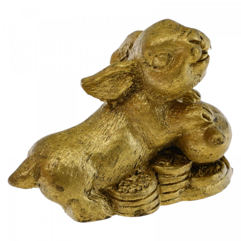- Iepure pe monede si WU Lou, Sanatate, Vitalitate, Protectie, Dragoste, NO1705, 4.3 x 5.2 cm, Auriu