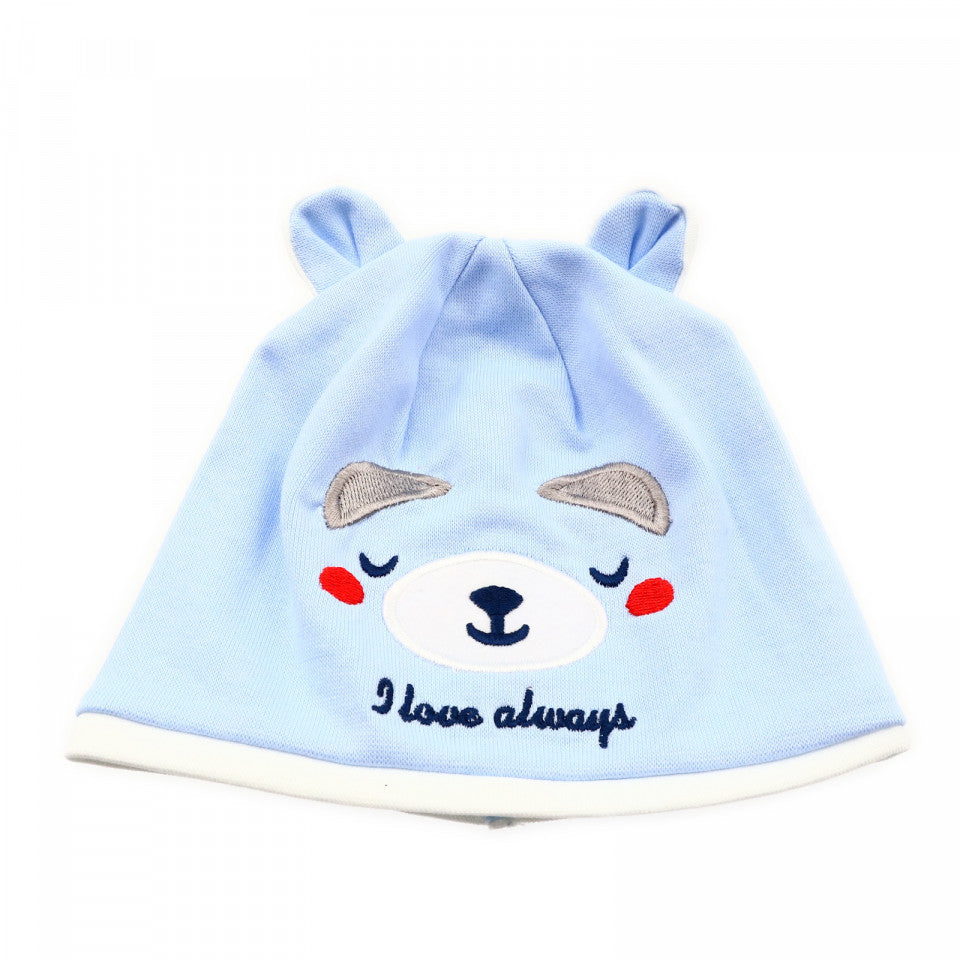 - Caciula pentru copii, cu urechi si imprimeu ursulet, marime 40, Bleu deschis