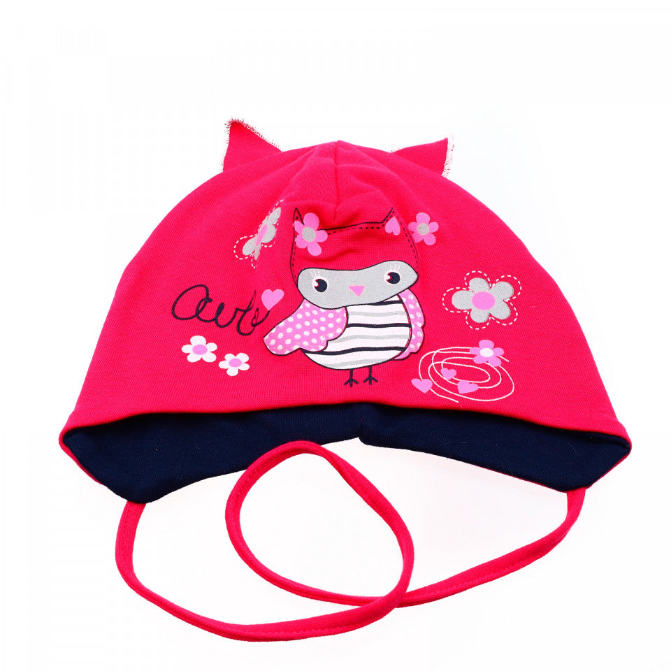 Caciula pentru fetite, cu imprimeu bufnita si urechi, +6 luni, Roz