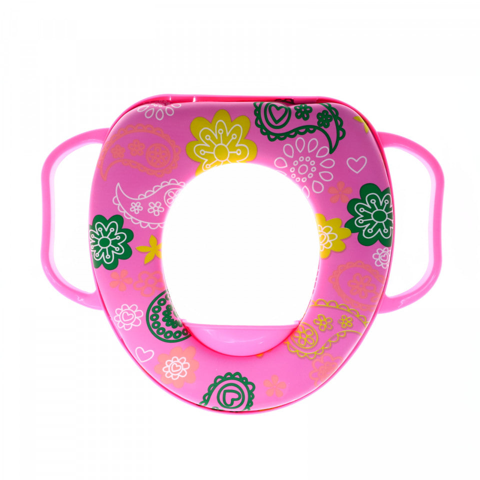 Capac WC pentru copii, cu burete si manere, Roz