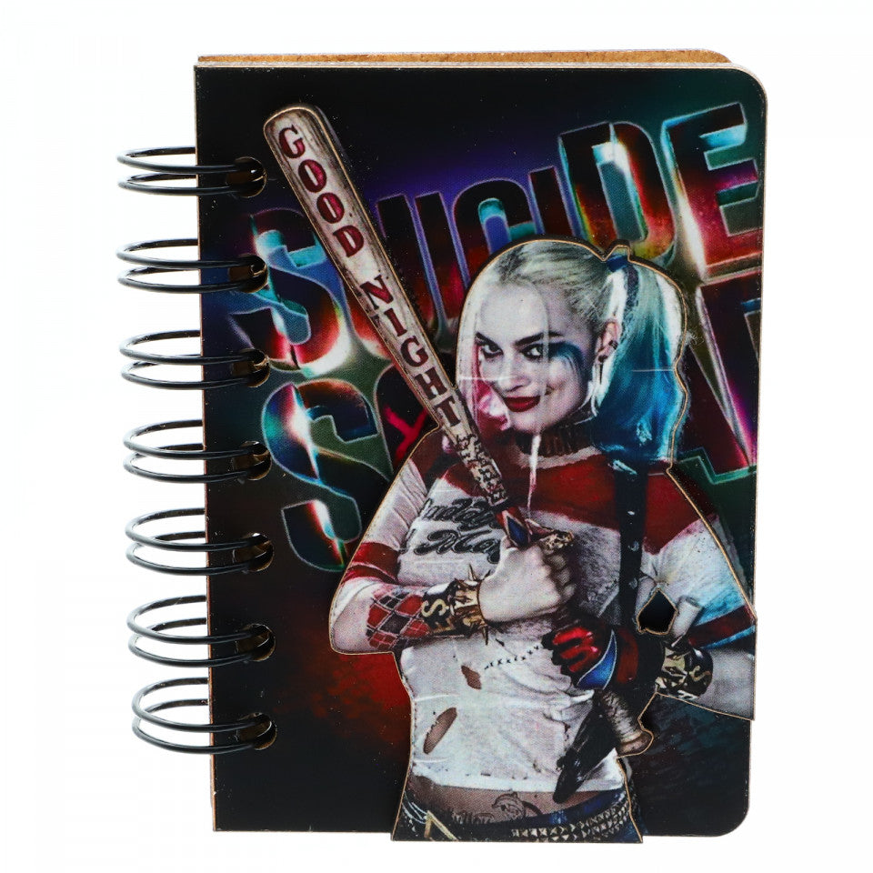 Agenda cu spirala, din lemn, Harley Quinn Suicide Squad, 10 x 7 cm