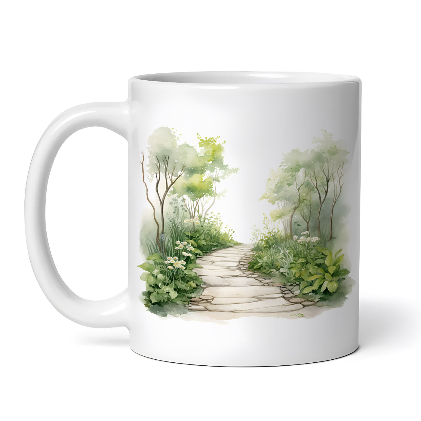 Cana ceramica, Drum in gradina cu flori, NO6509, 330 ml, Multicolor