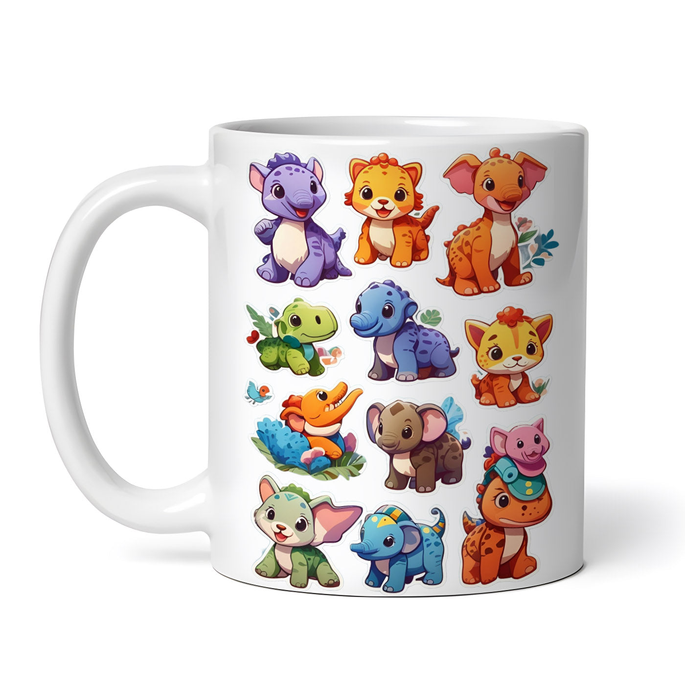 Cana ceramica, Elefantei si mini Dino, NO6879, 330 ml, Multicolor