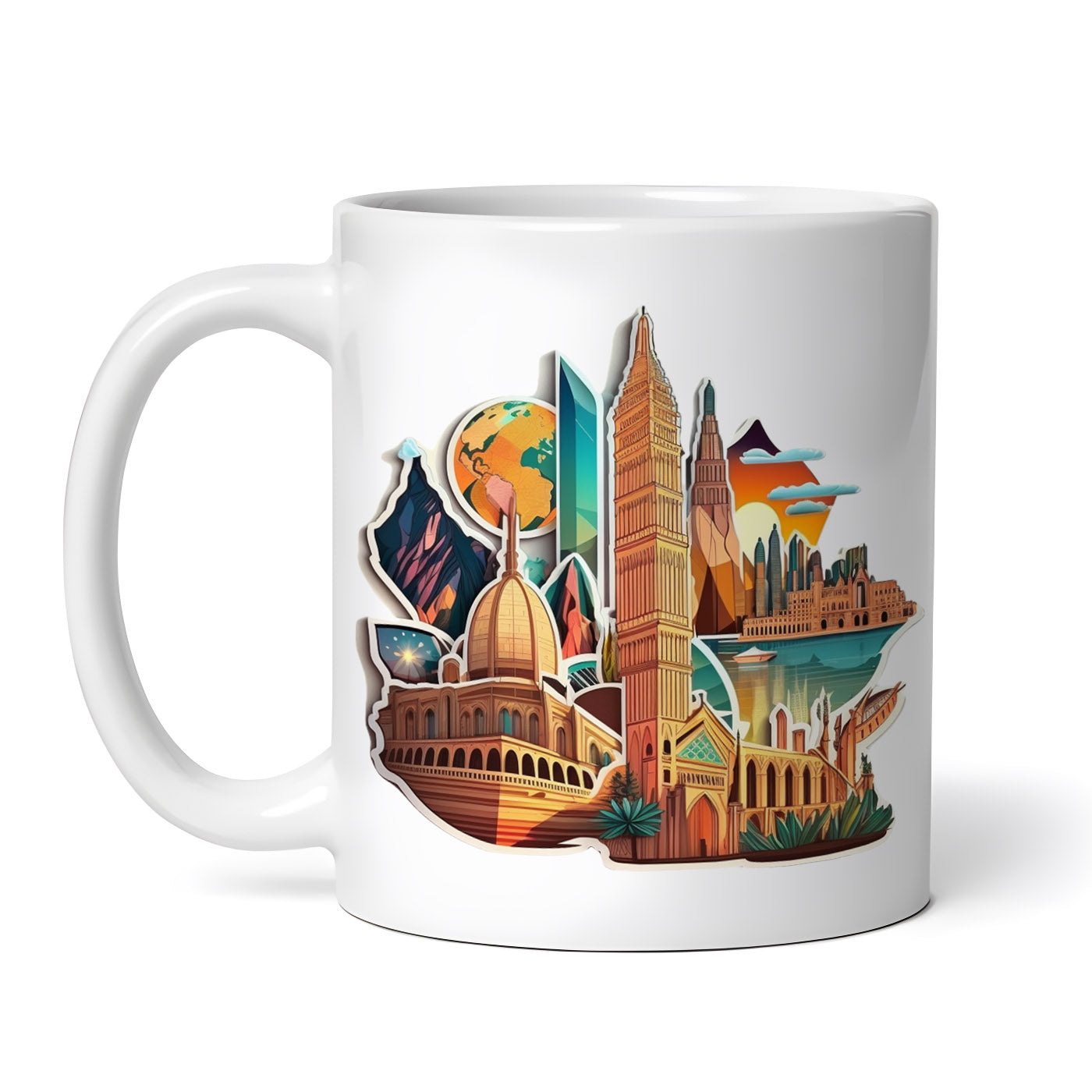 Cana ceramica, Elemente simbol din capitalele lumii, NO10013, 330 ml, Multicolor