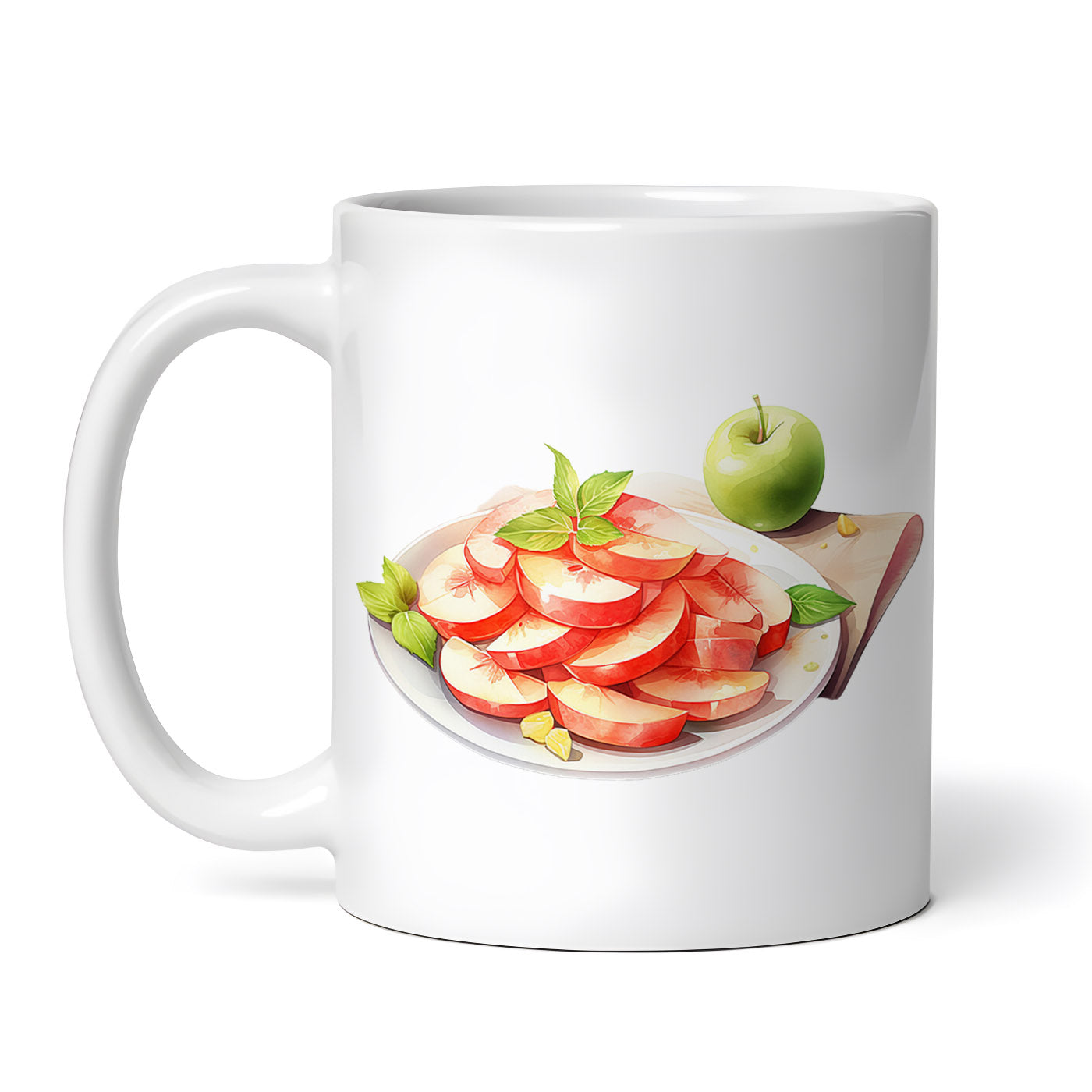 Cana ceramica, Farfurie cu felii de mere, NO3409, 330 ml, Multicolor