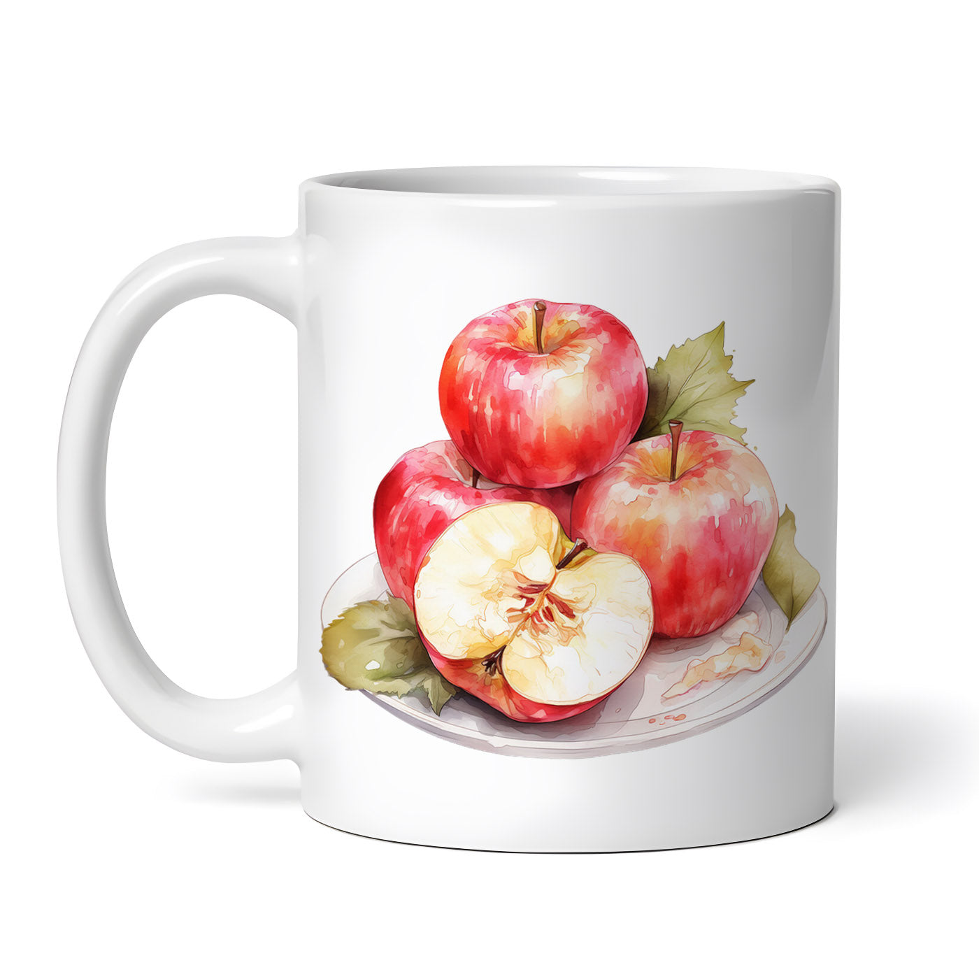 Cana ceramica, Farfurie cu mere, NO2152, 330 ml, Multicolor