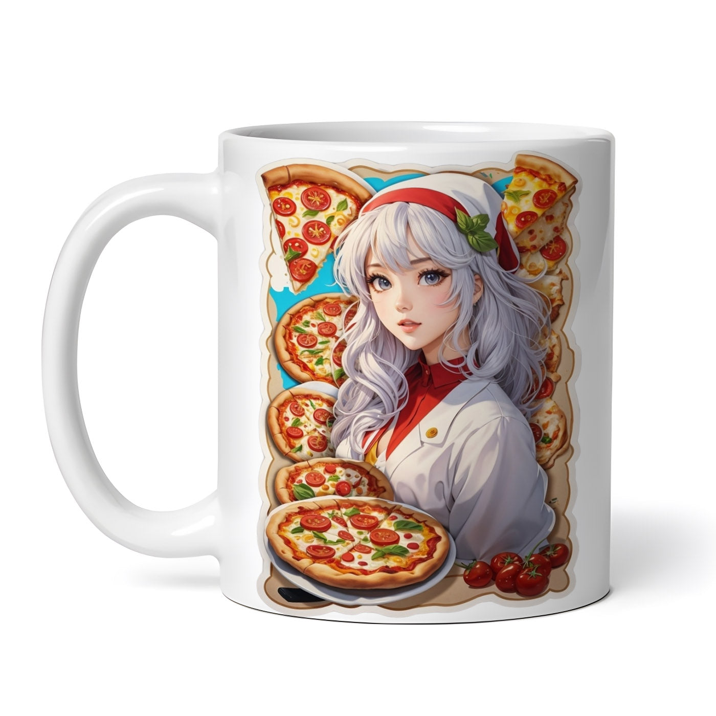 Cana ceramica, Fata care face pizza, NO7349, 330 ml, Multicolor