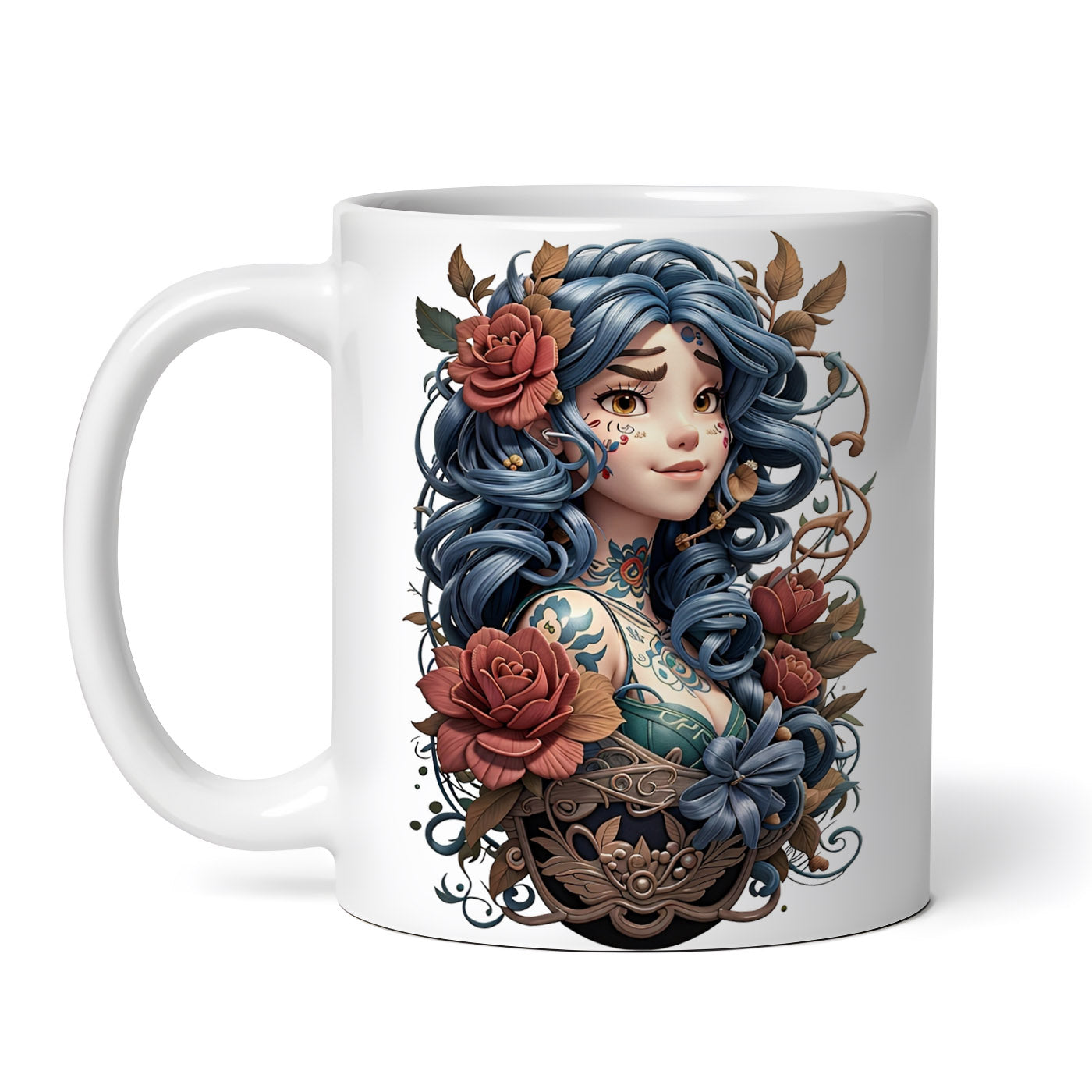 Cana ceramica, Fata cu bucle largi, NO6968, 330 ml, Multicolor
