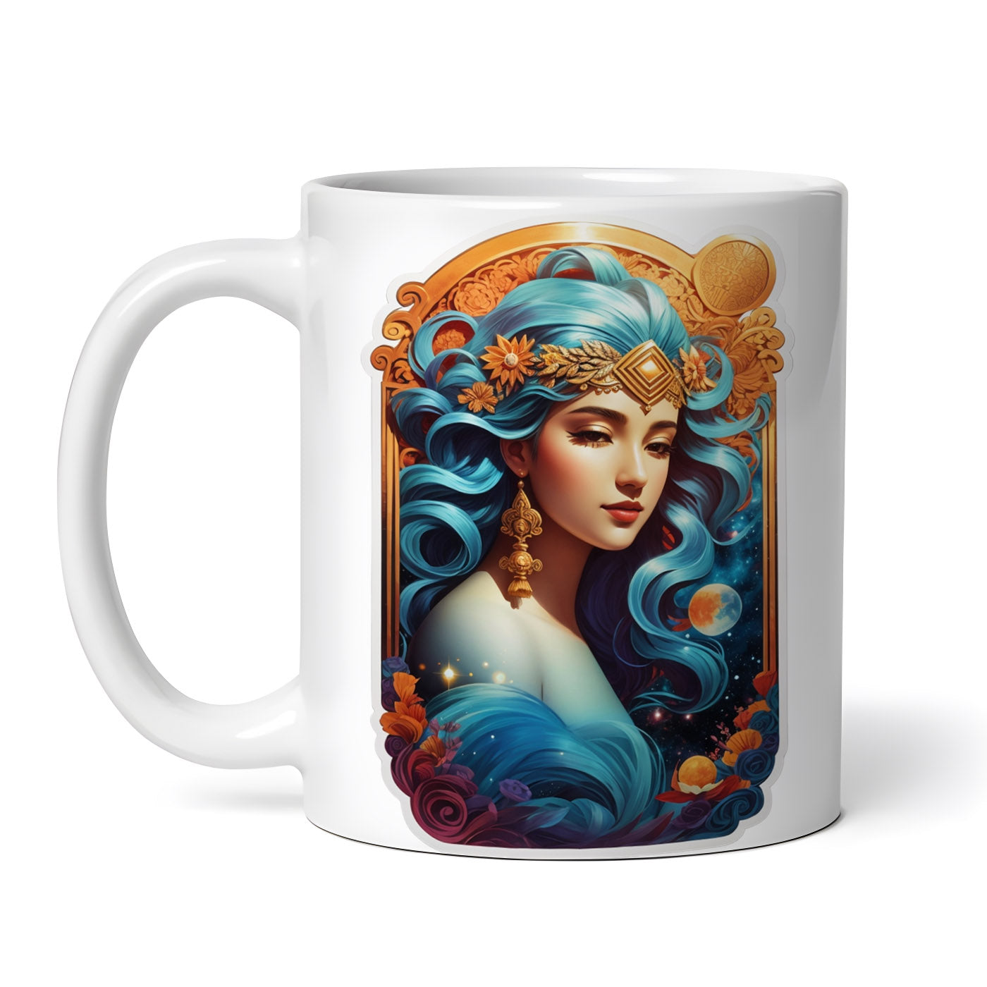 Cana ceramica, Fata cu diadema simbol zodia varsator, NO7672, 330 ml, Multicolor
