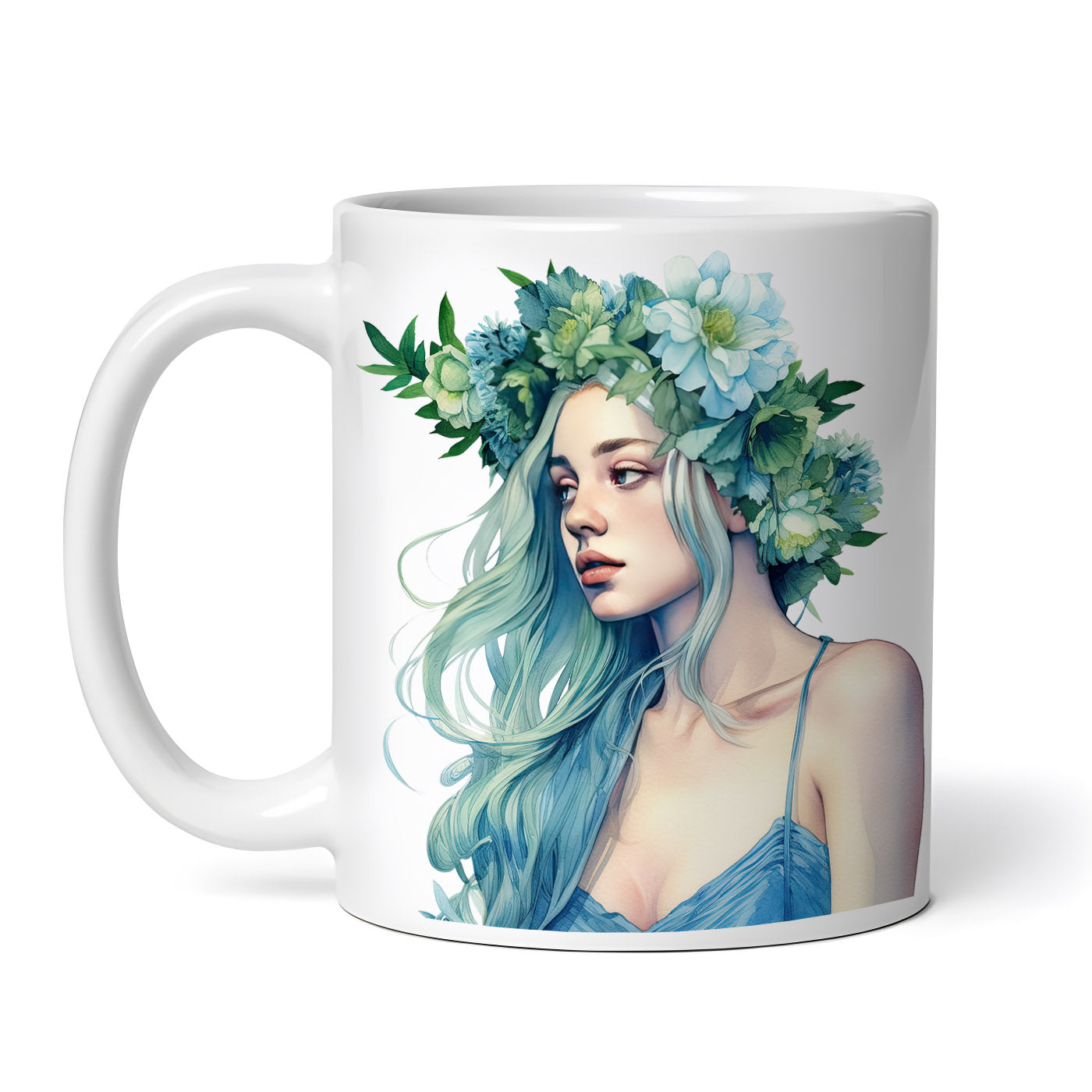 Cana ceramica, Fata cu flori in par, NO5412, 330 ml, Multicolor