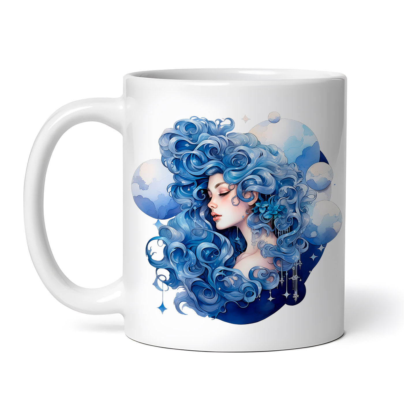 Cana ceramica, Fata cu parul albastru si flori in par, NO5121, 330 ml, Multicolor