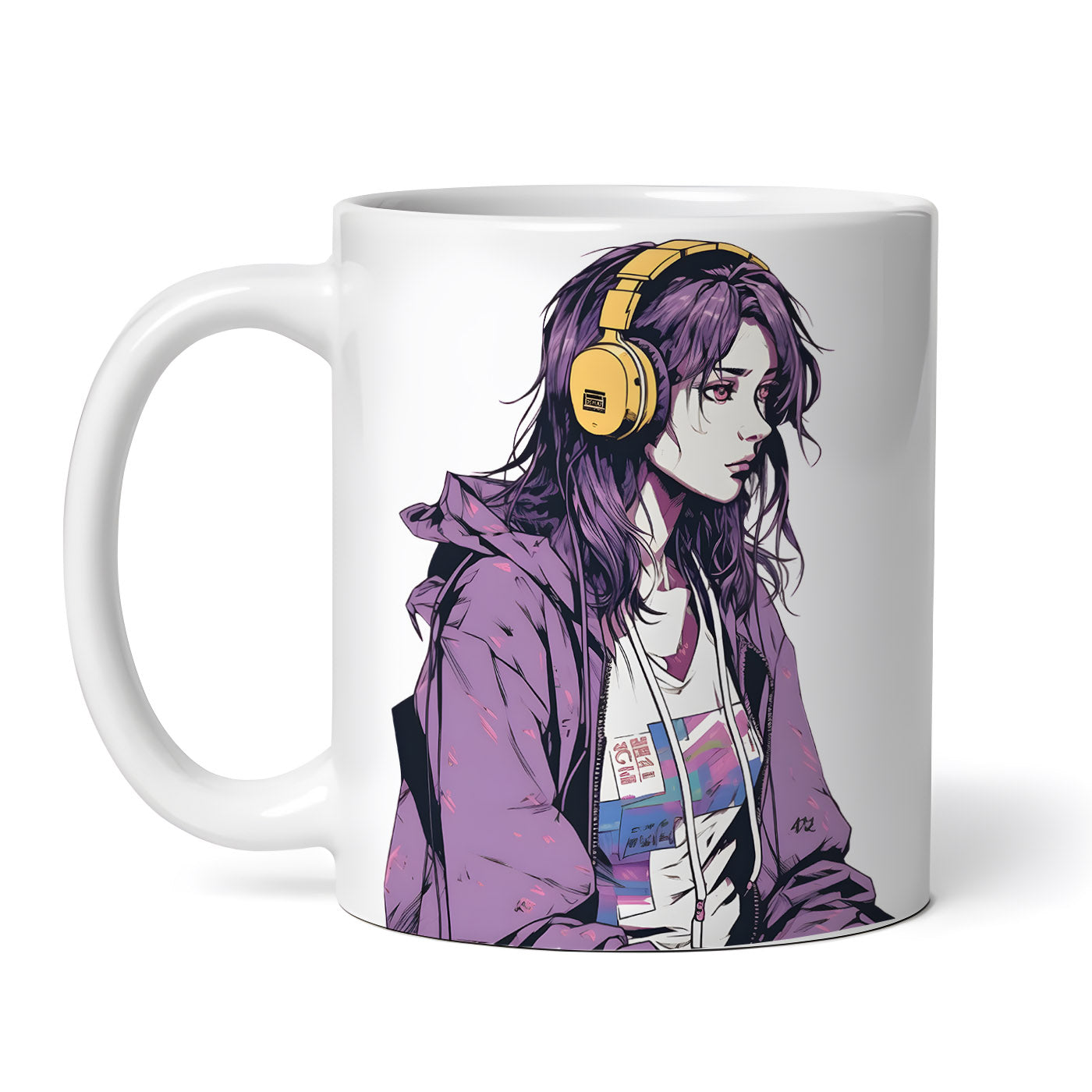 Cana ceramica, Fata cu parul mov si cu casti, NO987, 330 ml, Multicolor