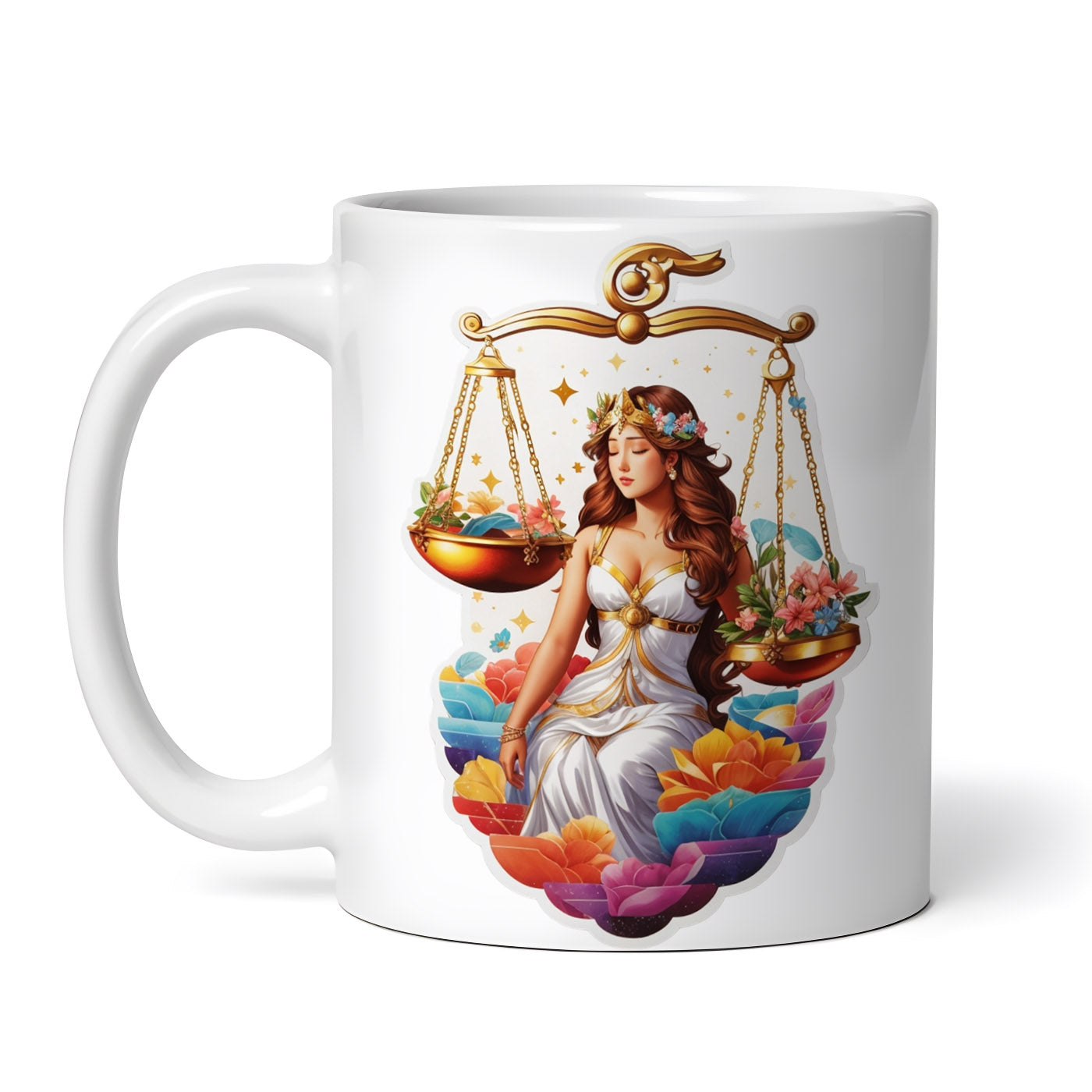 Cana ceramica, Fata cu talere ci flori simbol zodia balanta, NO8440, 330 ml, Multicolor