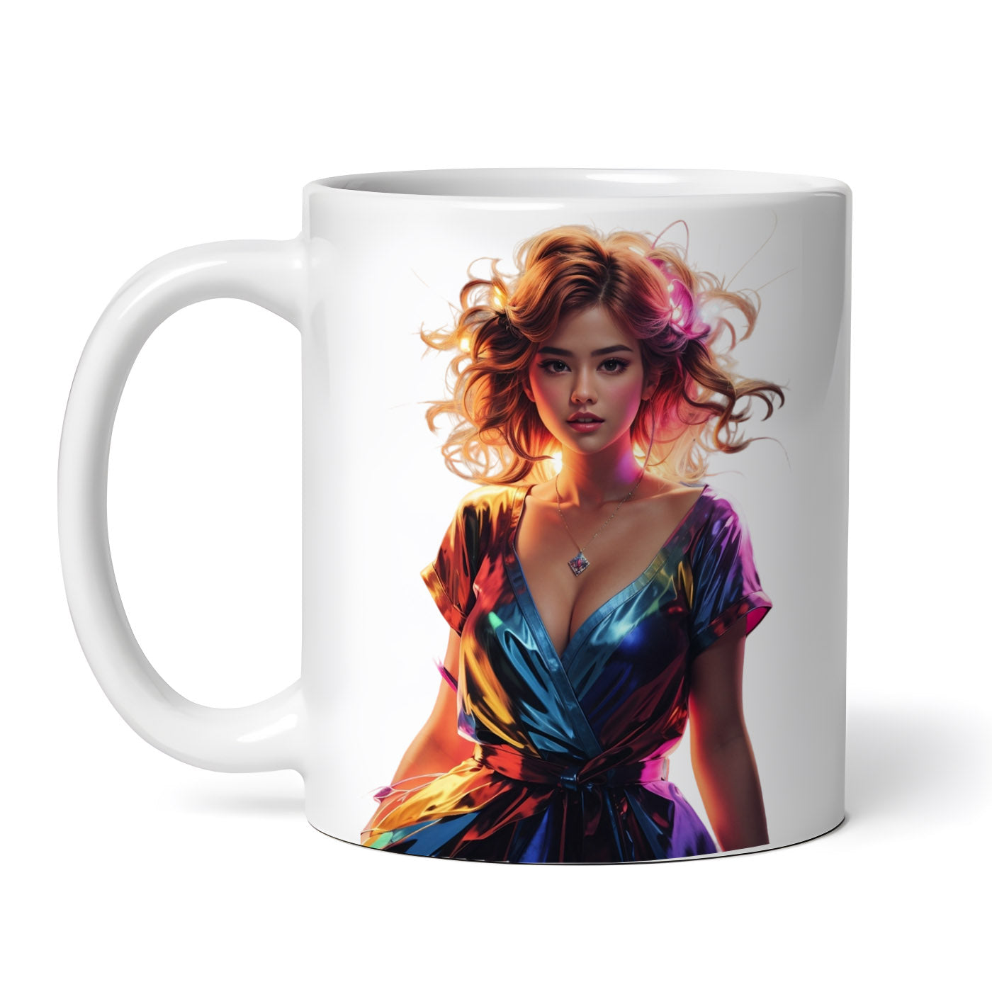 Cana ceramica, Fata in culori electrice, NO6862, 330 ml, Multicolor