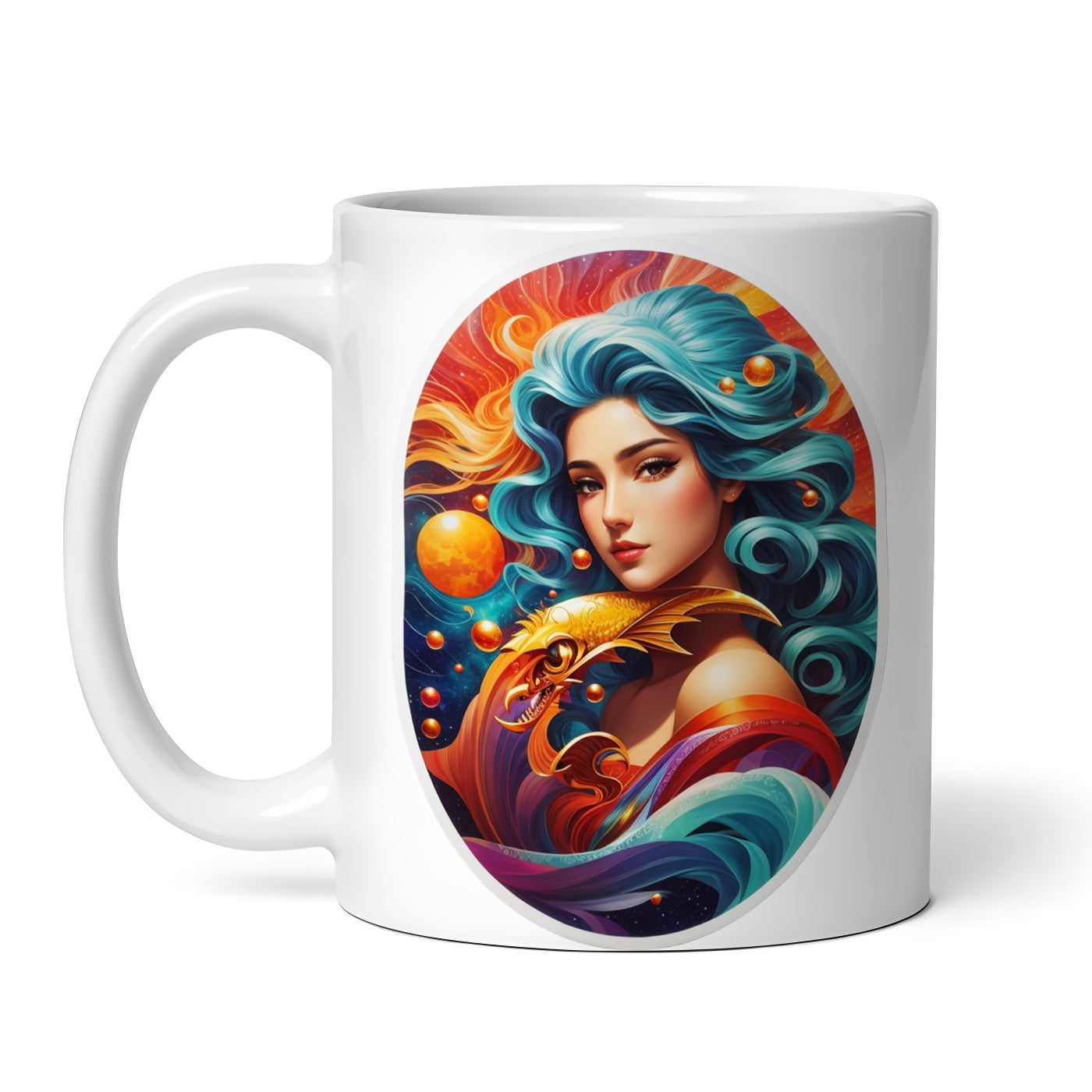 Cana ceramica, Fata simbol zodia pesti, NO7670, 330 ml, Multicolor