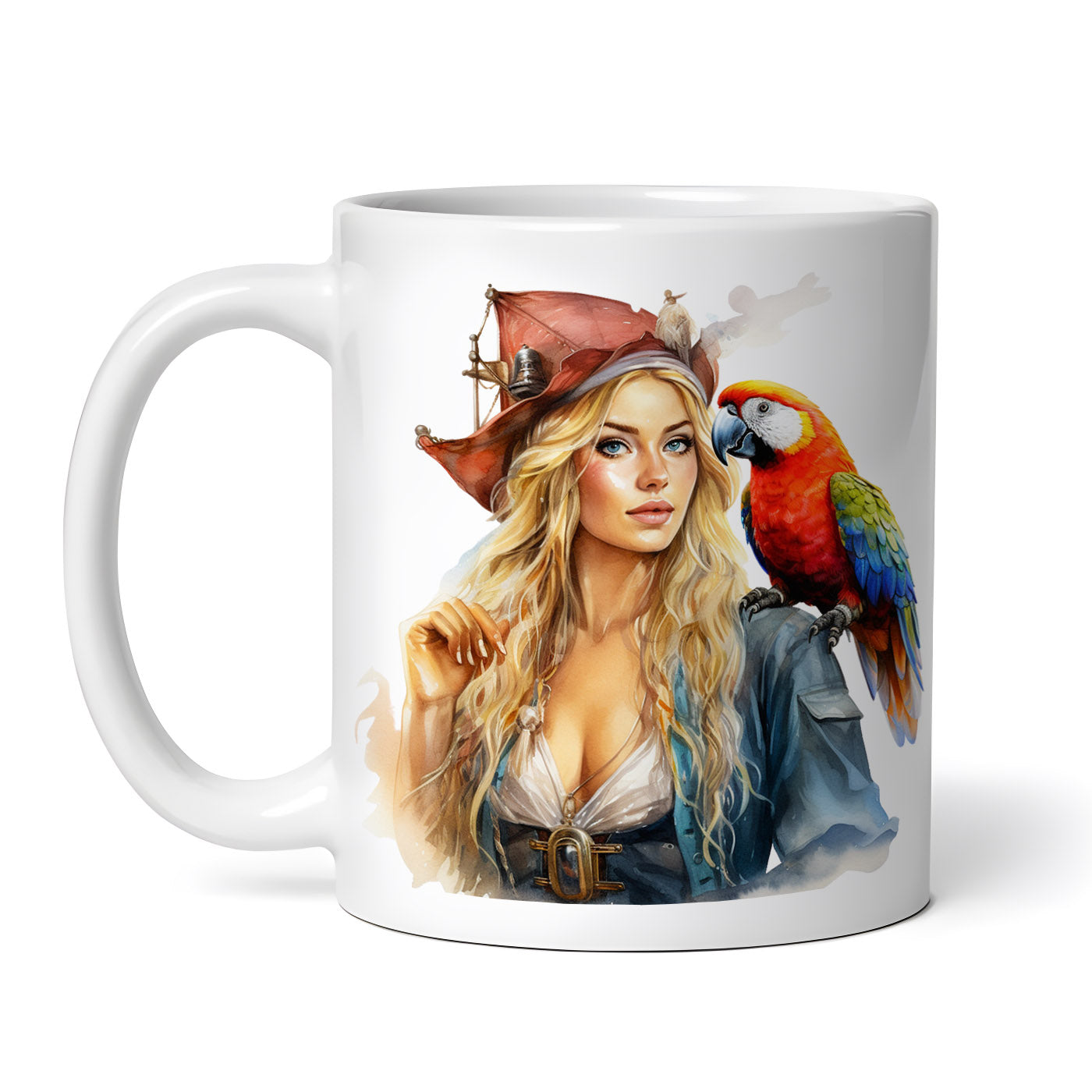 Cana ceramica, Femeia pirat cu papagal pe umar, NO1096, 330 ml, Multicolor