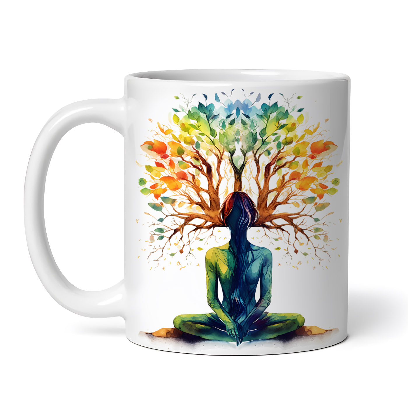Cana ceramica, Femeie spirituala Chakra, NO4200, 330 ml, Multicolor