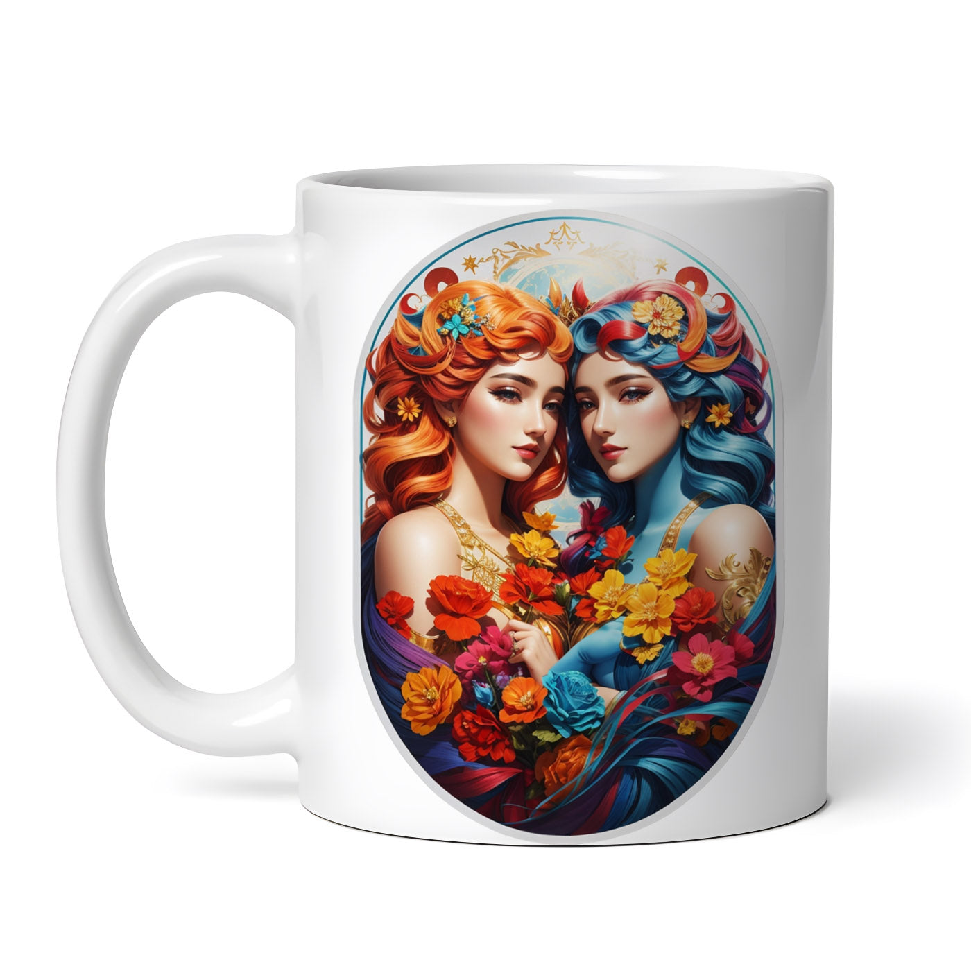 Cana ceramica, Fete cu bucle simbol zodia gemeni, NO8212, 330 ml, Multicolor