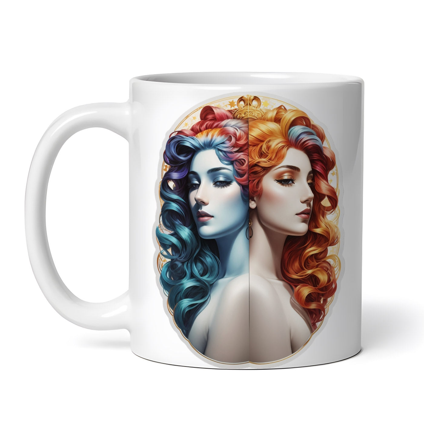 Cana ceramica, Fete simbol zodia gemeni, NO8215, 330 ml, Multicolor