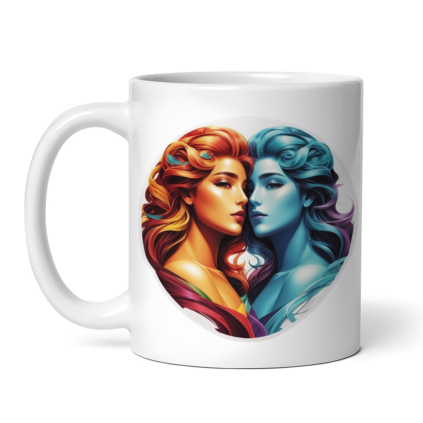 Cana ceramica, Fete simbol zodia gemeni, NO8218, 330 ml, Multicolor