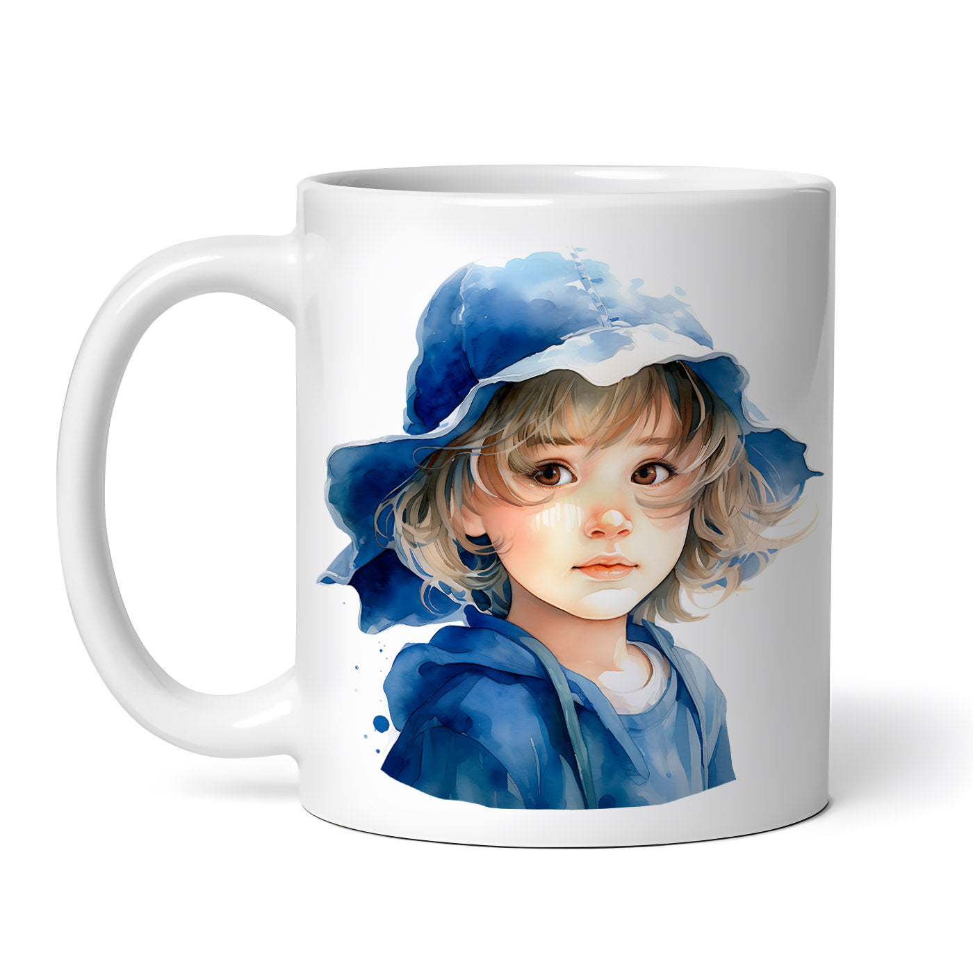 Cana ceramica, Fetita cu palarie albastra, NO4573, 330 ml, Multicolor