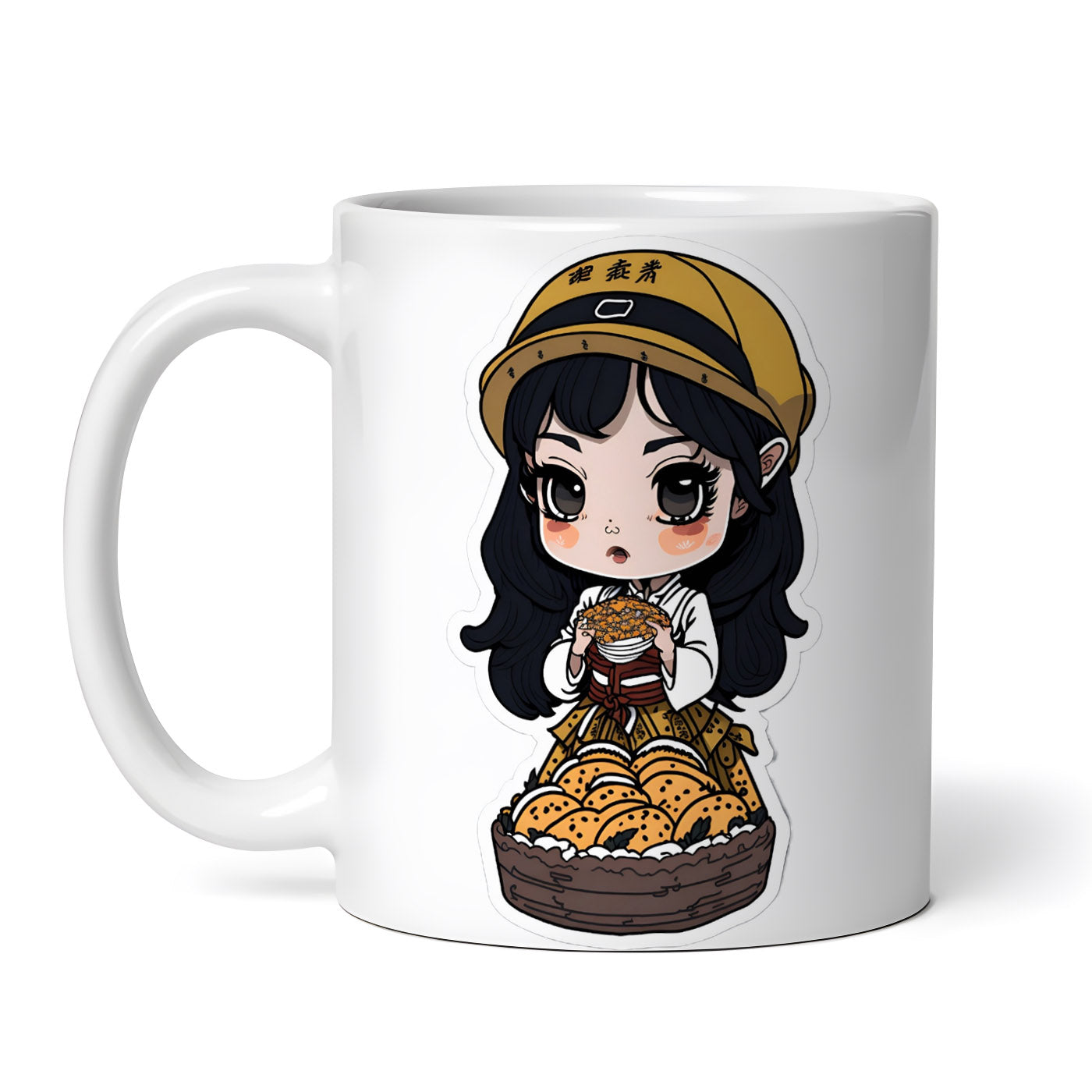 Cana ceramica, Fetita cu prajituri, NO7071, 330 ml, Multicolor