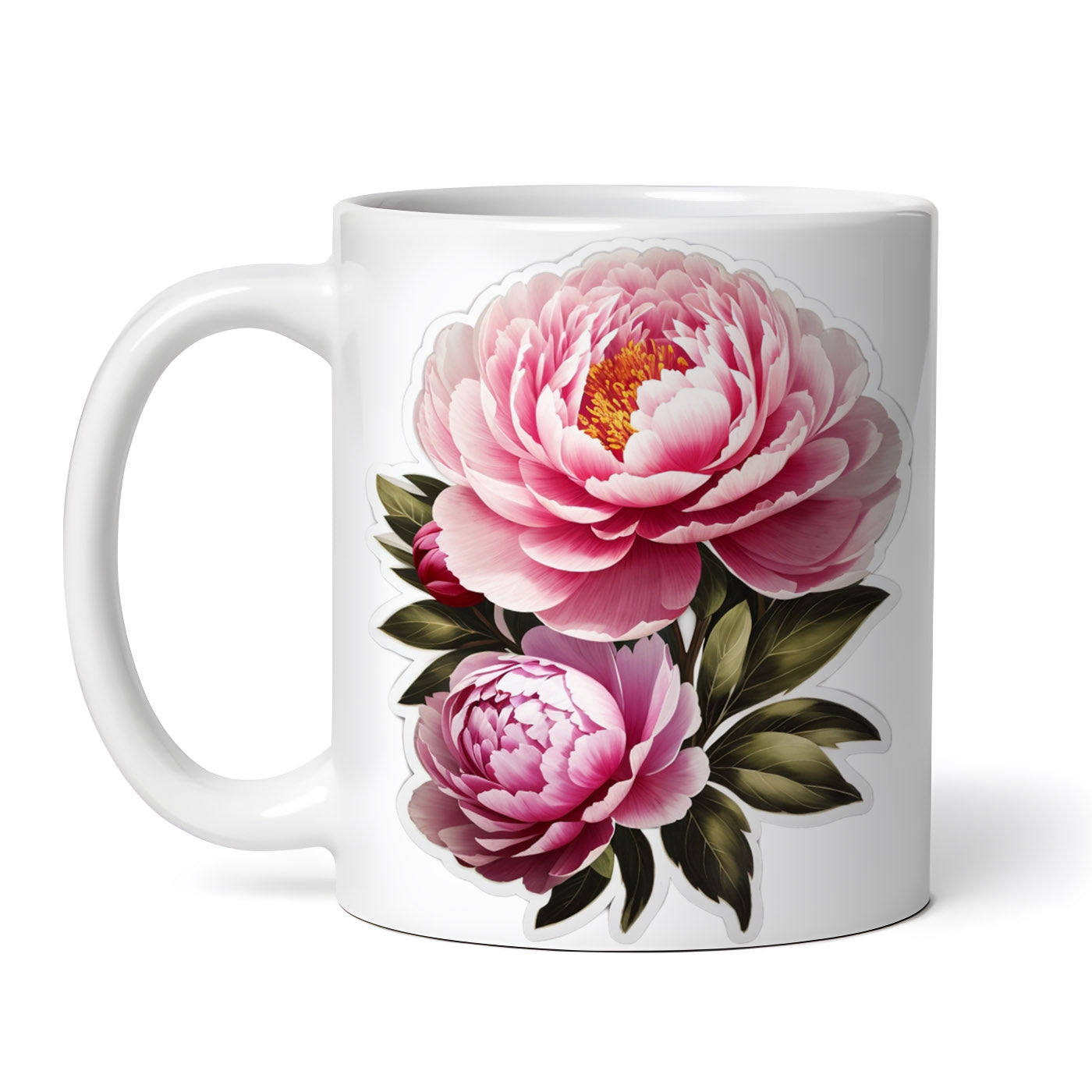 Cana ceramica, Floare de Bujor, NO8688, 330 ml, Multicolor