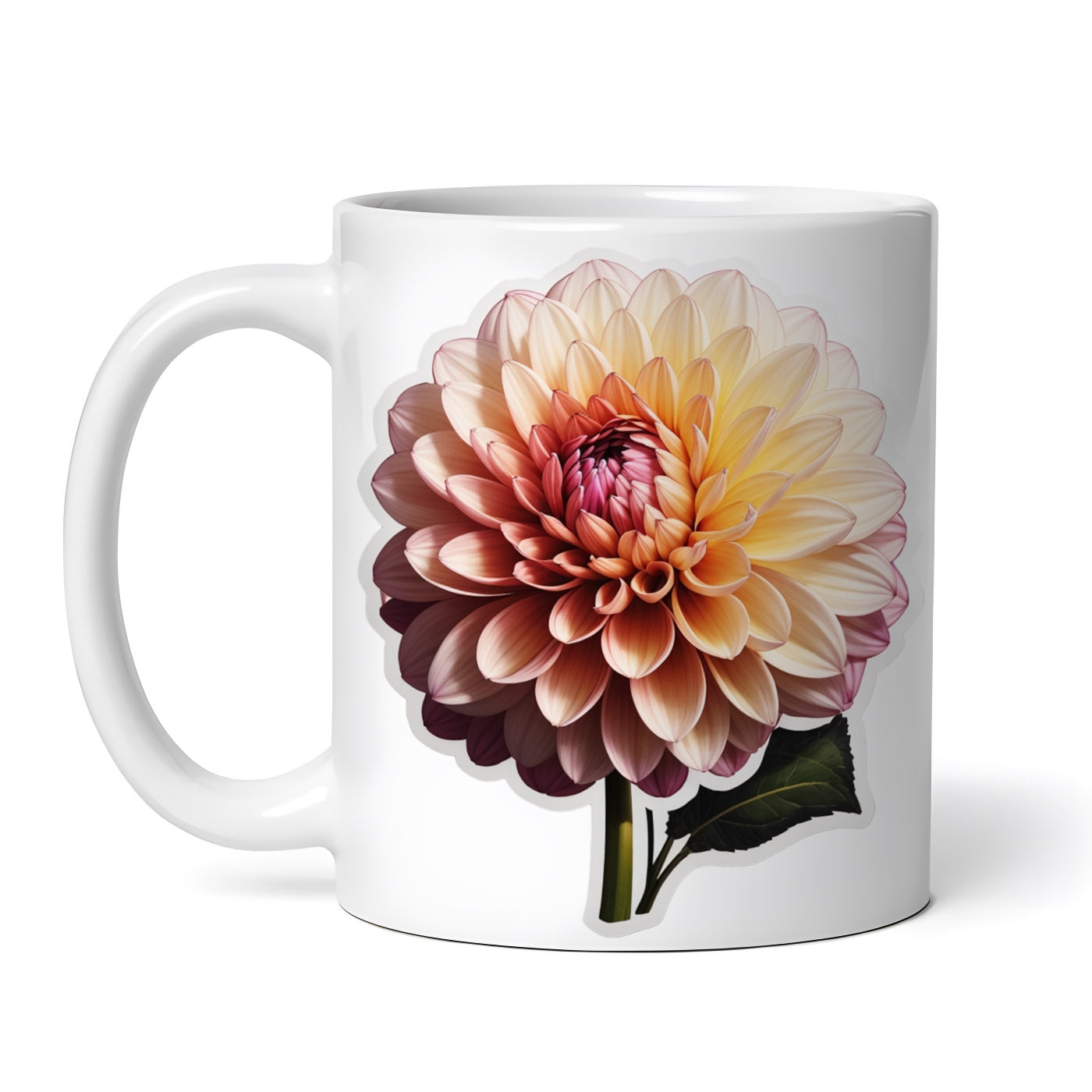 Cana ceramica, Floare de Dalie, NO8055, 330 ml, Multicolor