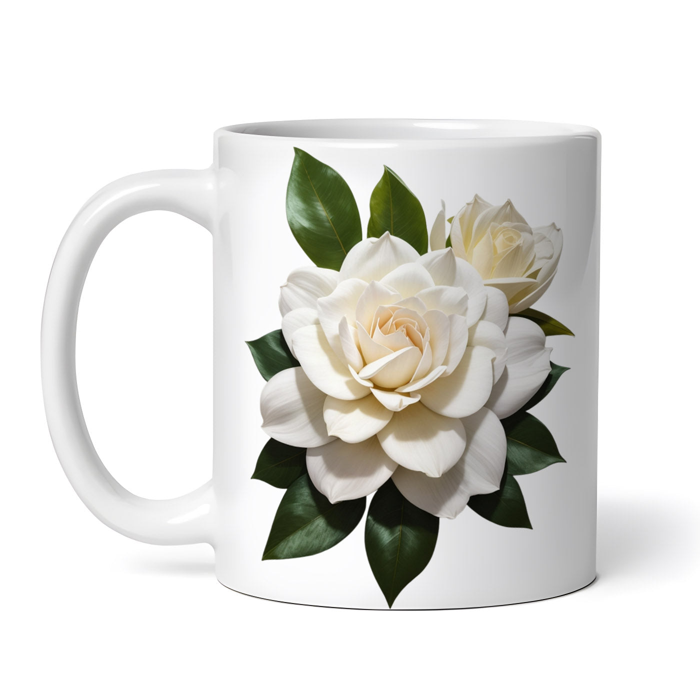 Cana ceramica, Floare de gardenia, NO8205, 330 ml, Multicolor