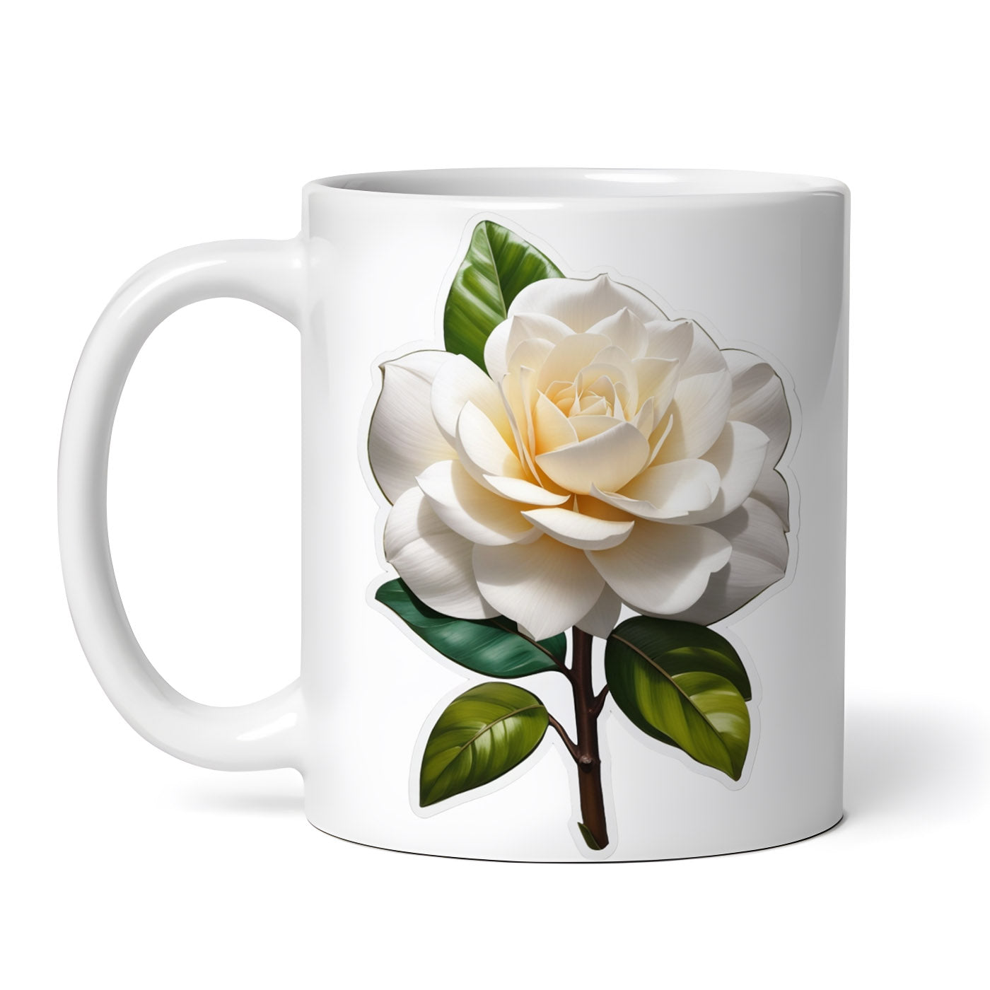 Cana ceramica, Floare de Gardenia , NO8209, 330 ml, Multicolor