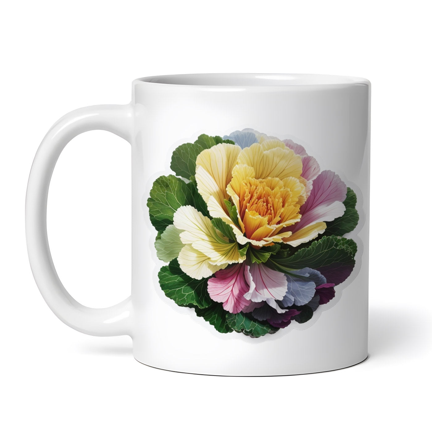 Cana ceramica, Floare de kale, NO8390, 330 ml, Multicolor