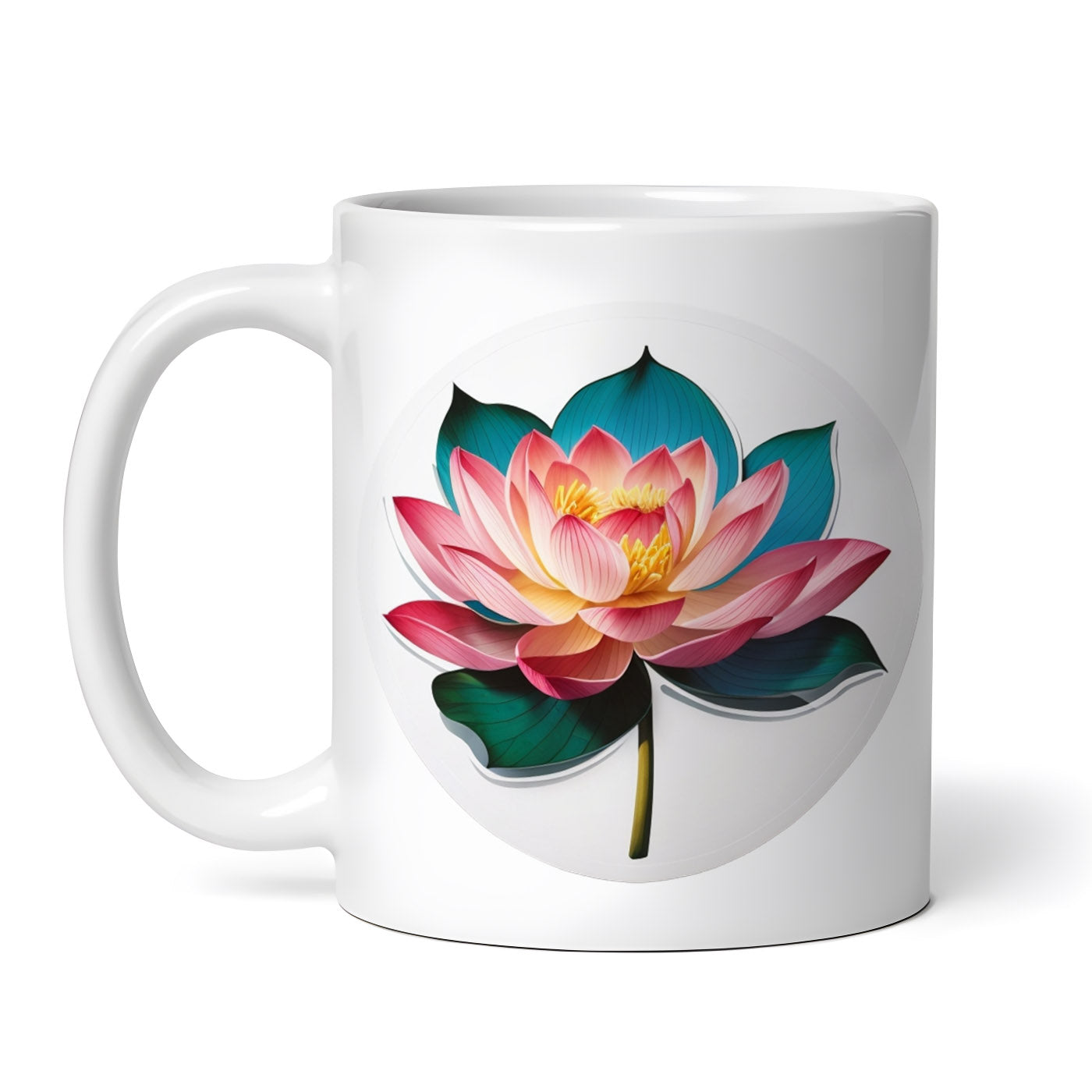 Cana ceramica, Floare de lotus cu frunze, NO8466, 330 ml, Multicolor