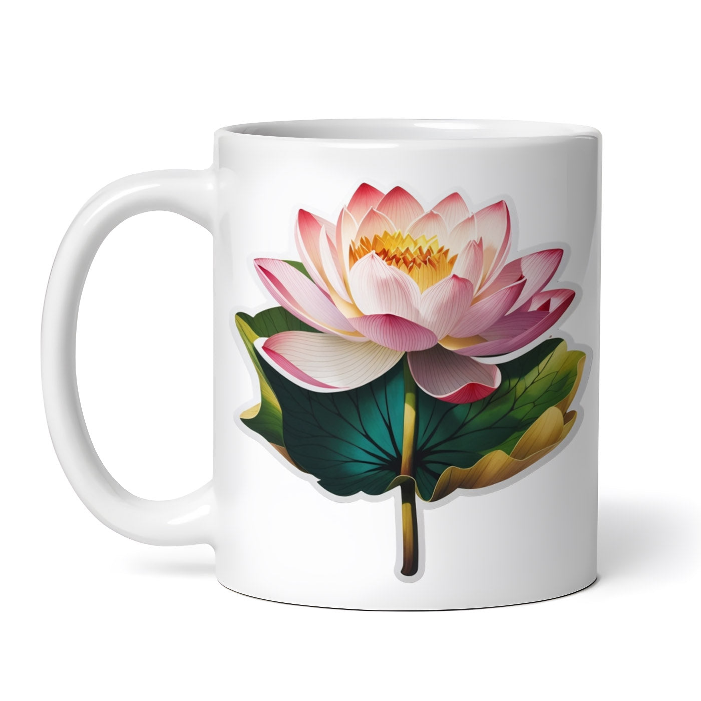 Cana ceramica, Floare de lotus cu frunze, NO8468, 330 ml, Multicolor