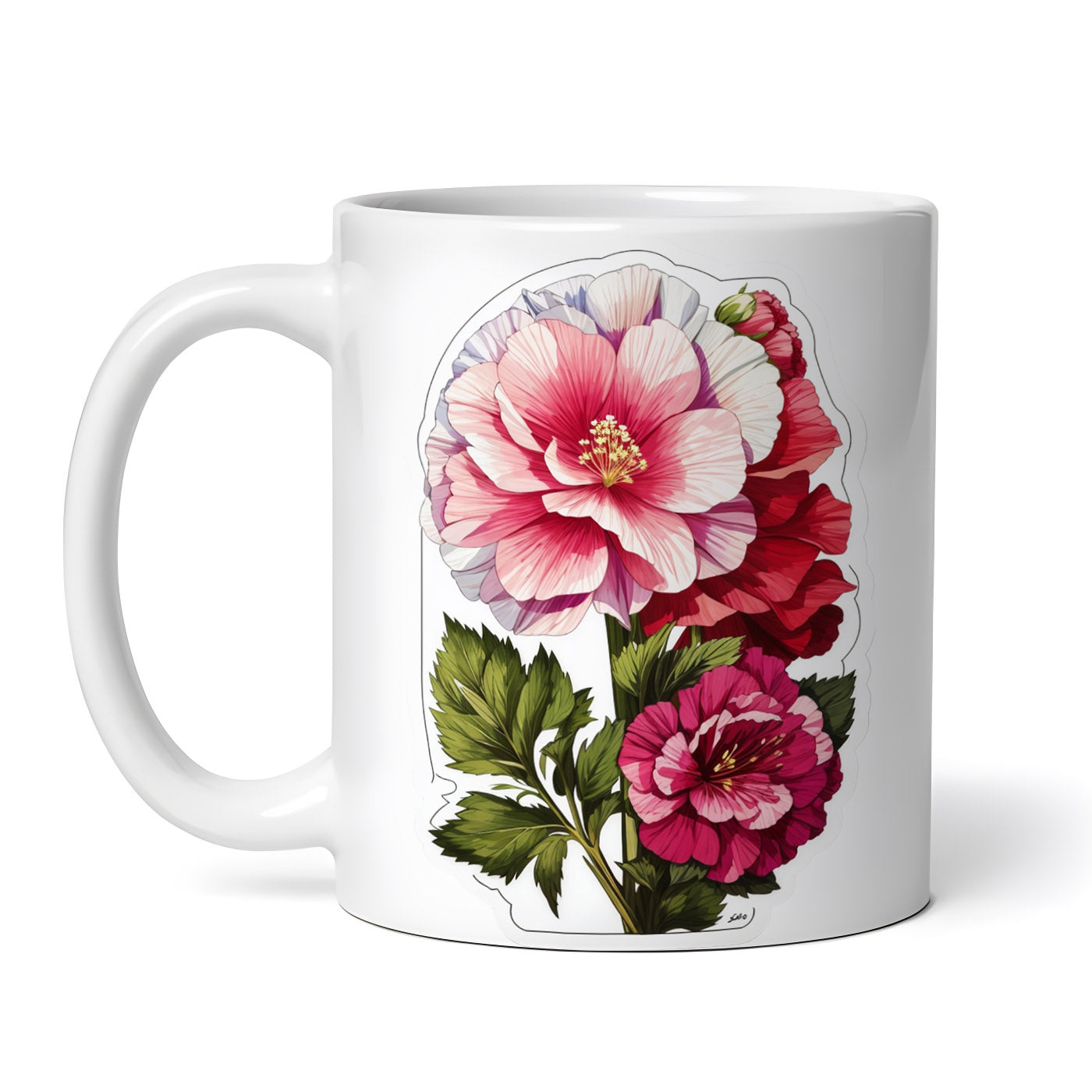 Cana ceramica, Floare de nalba de gradina, NO8337, 330 ml, Multicolor