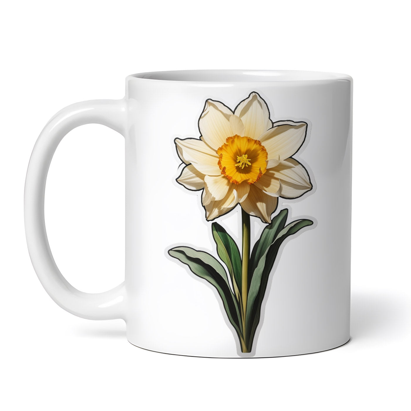 Cana ceramica, Floare de narcisa cu frunze, NO8051, 330 ml, Multicolor