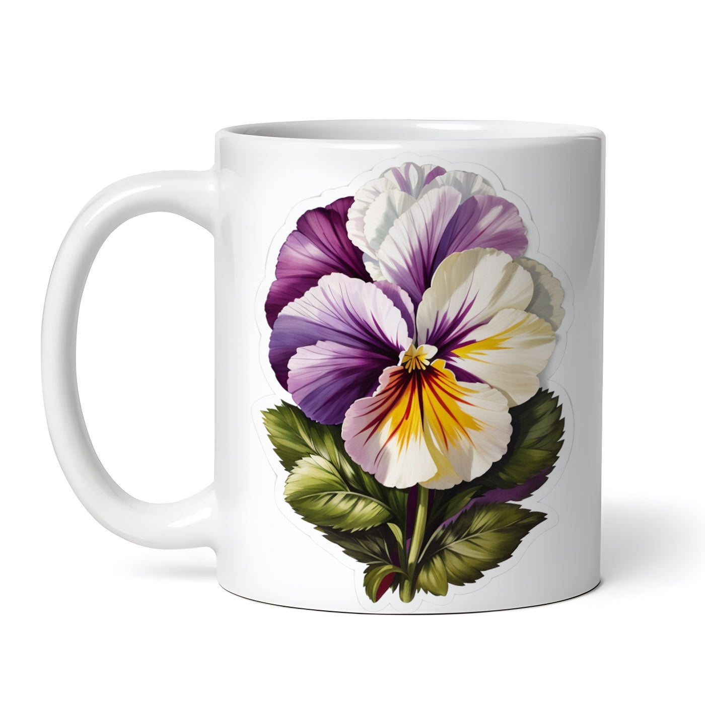 Cana ceramica, Floare de panseluta, NO8664, 330 ml, Multicolor