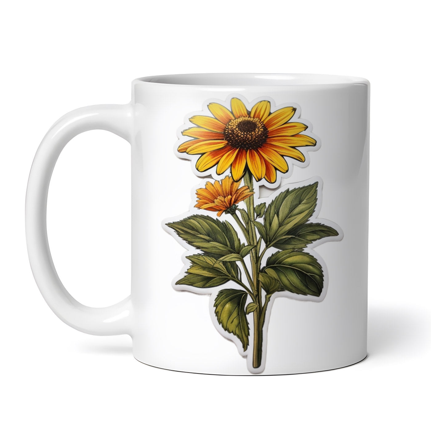 Cana ceramica, Floare de Rudbeckia, NO8818, 330 ml, Multicolor