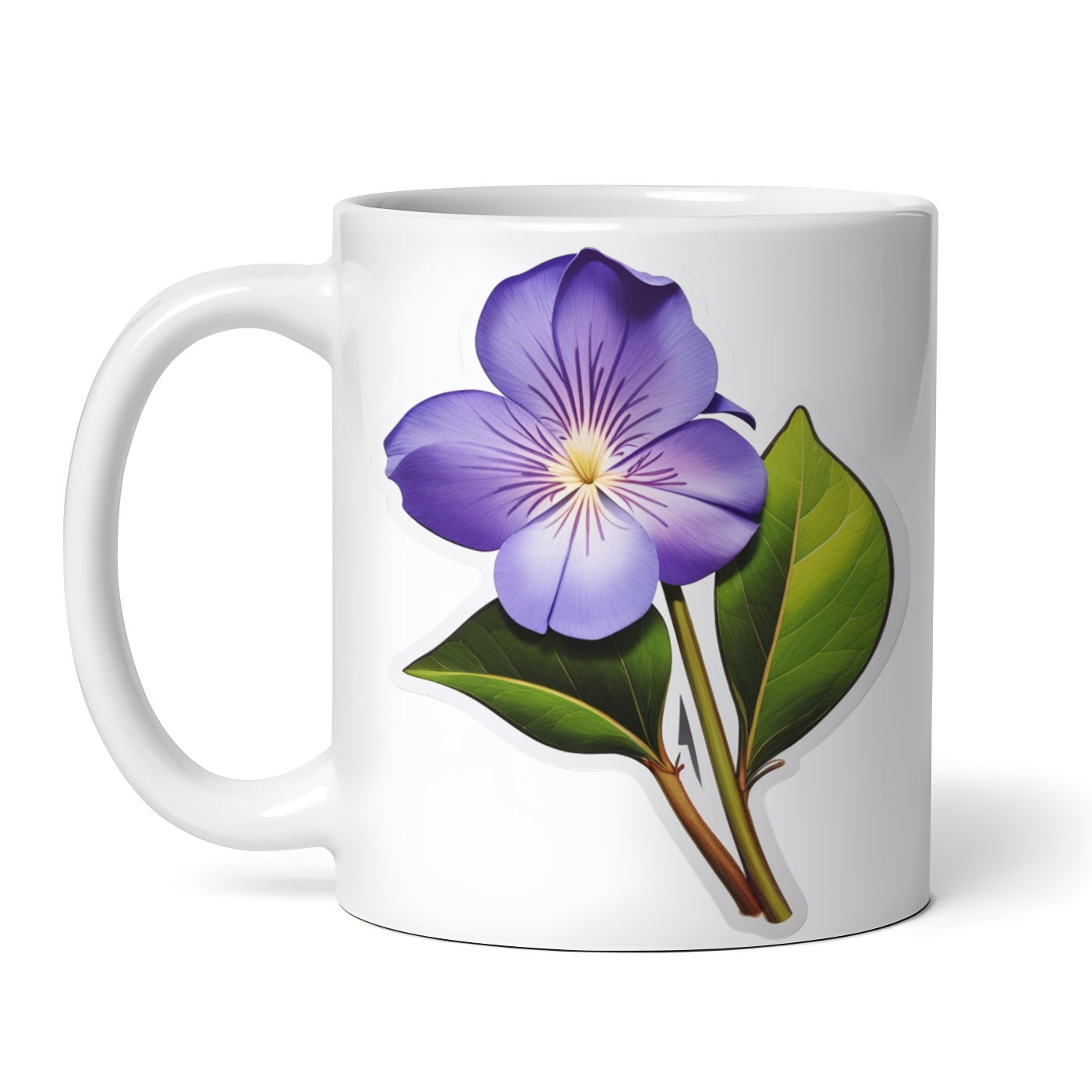 Cana ceramica, Floare de vinca cu frunze, NO8694, 330 ml, Multicolor