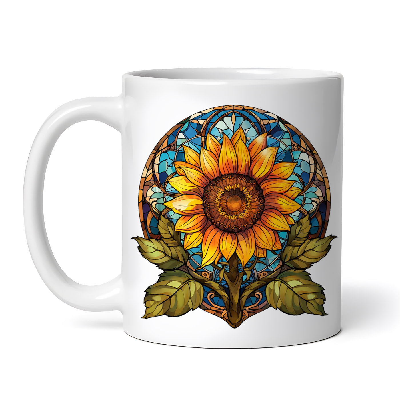 Cana ceramica, Floarea soarelui in fata vitraliului, NO6533, 330 ml, Multicolor