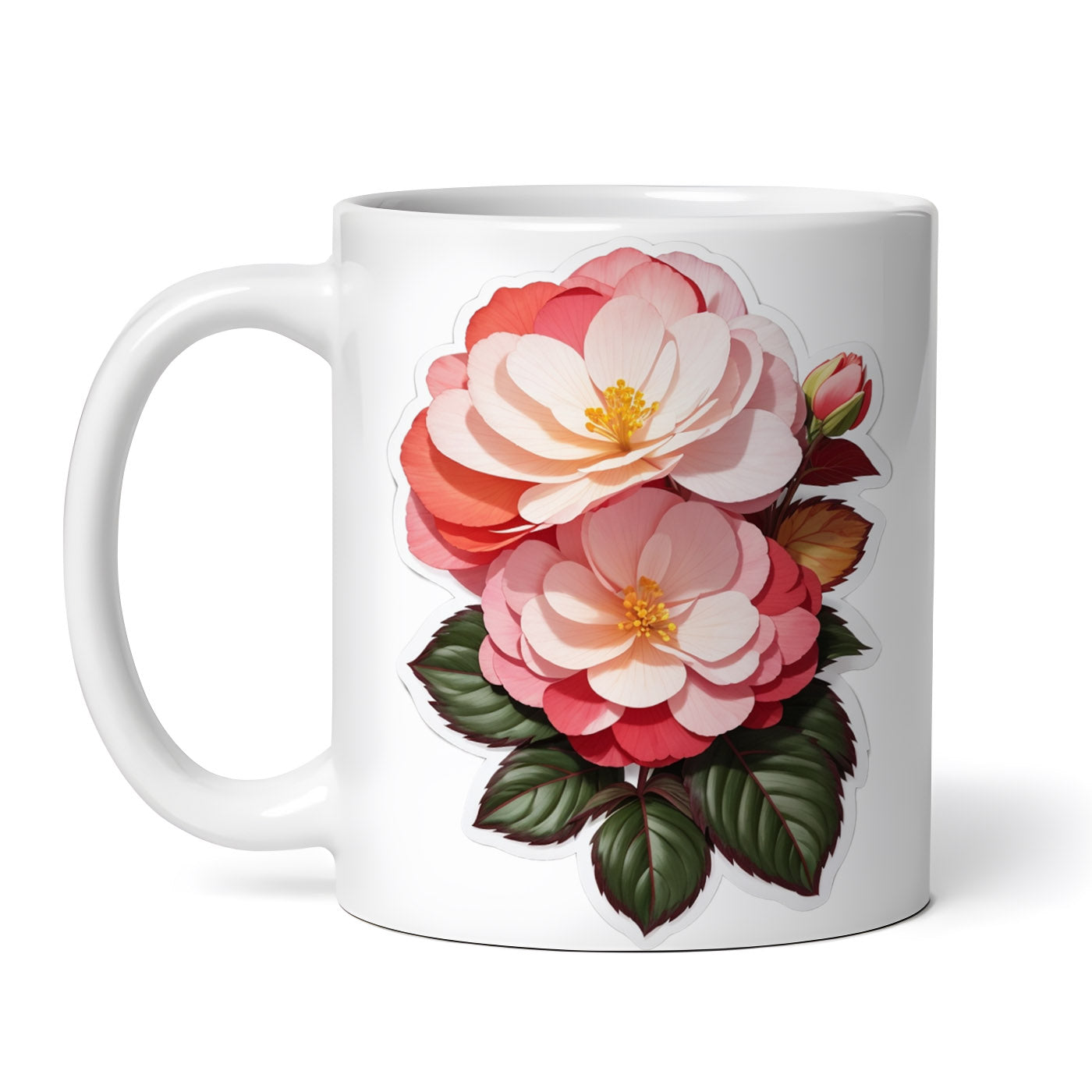 Cana ceramica, Flori begonia, NO7775, 330 ml, Multicolor