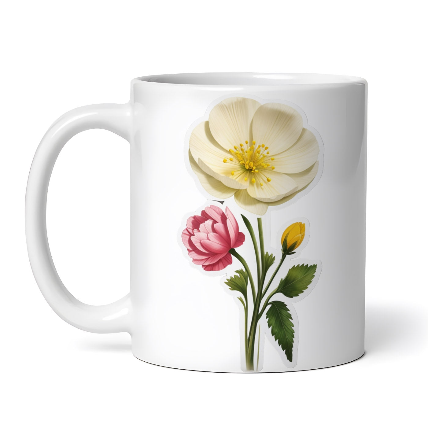 Cana ceramica, Flori Buttercup cu boboci, NO7895, 330 ml, Multicolor