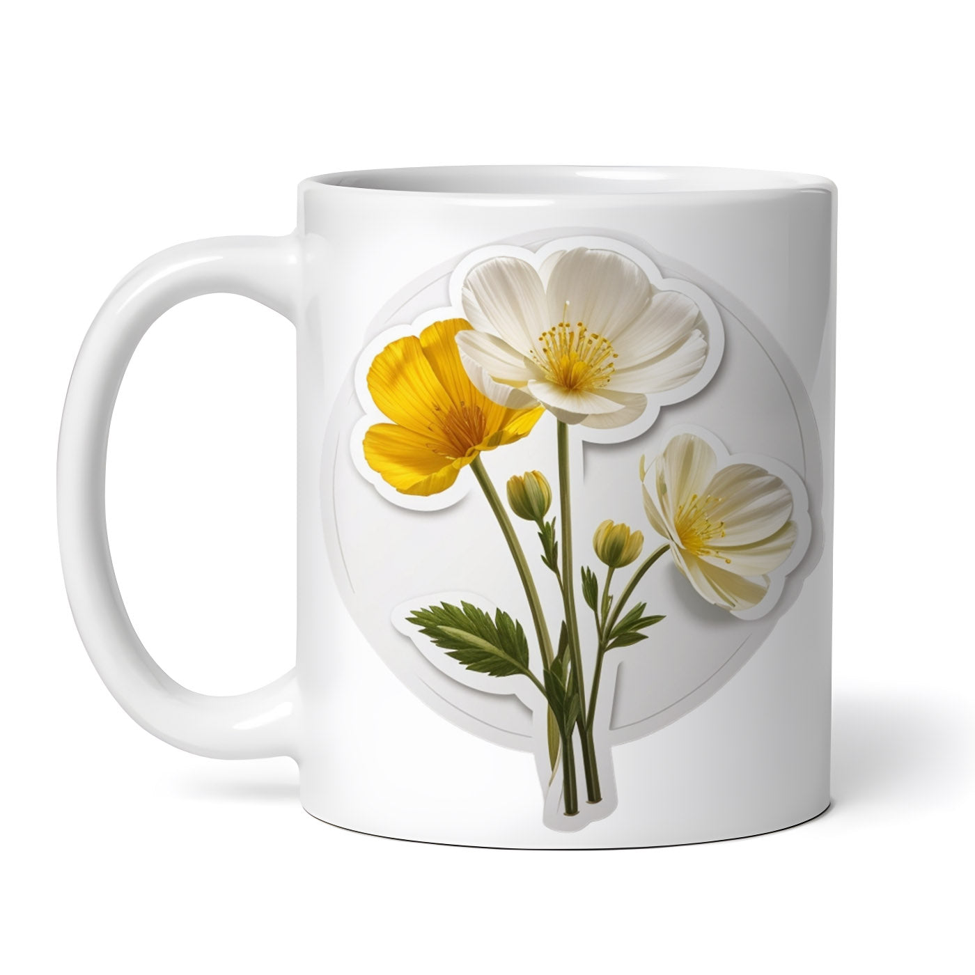Cana ceramica, Flori buttercup, NO7893, 330 ml, Multicolor