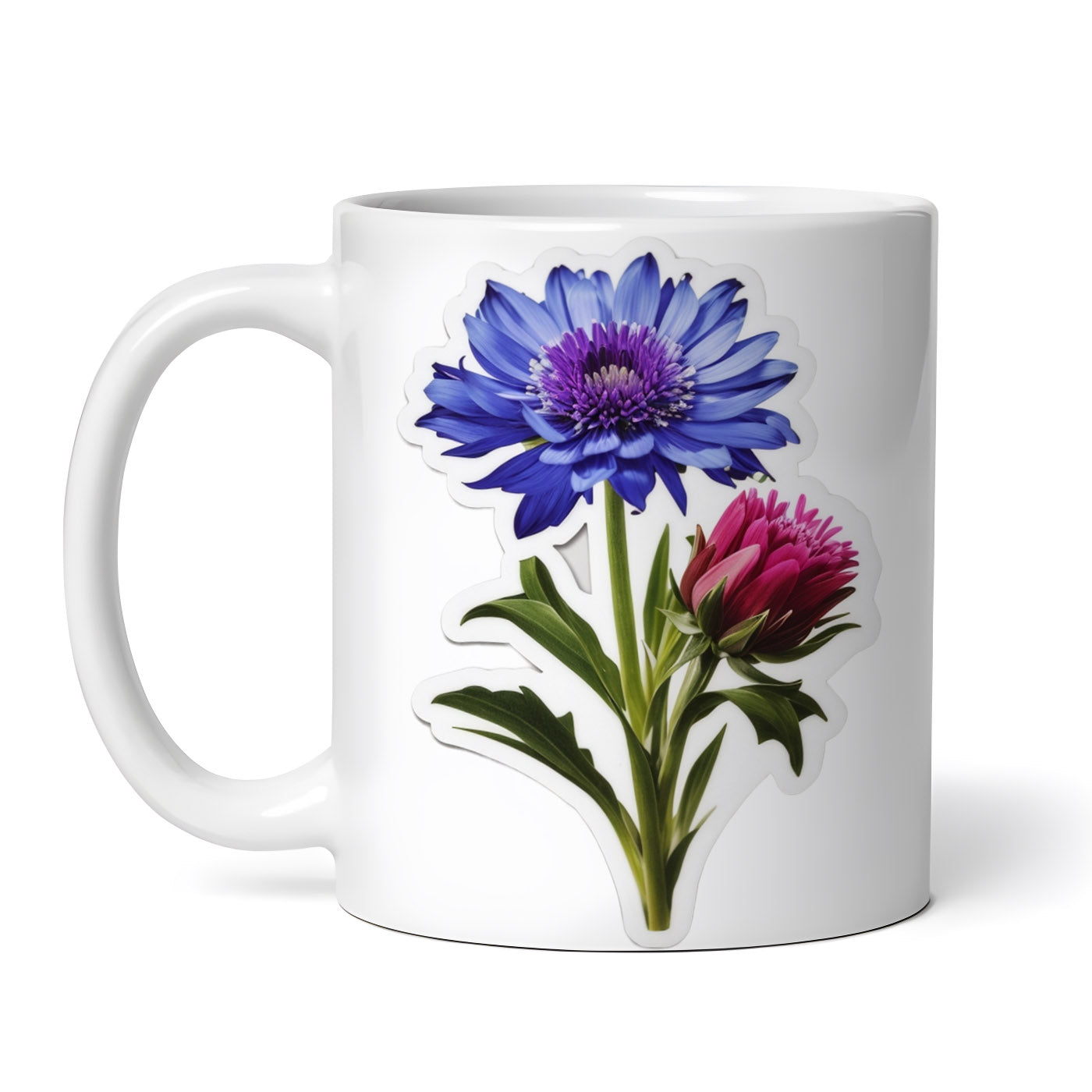 Cana ceramica, Flori de albastrele, NO8016, 330 ml, Multicolor