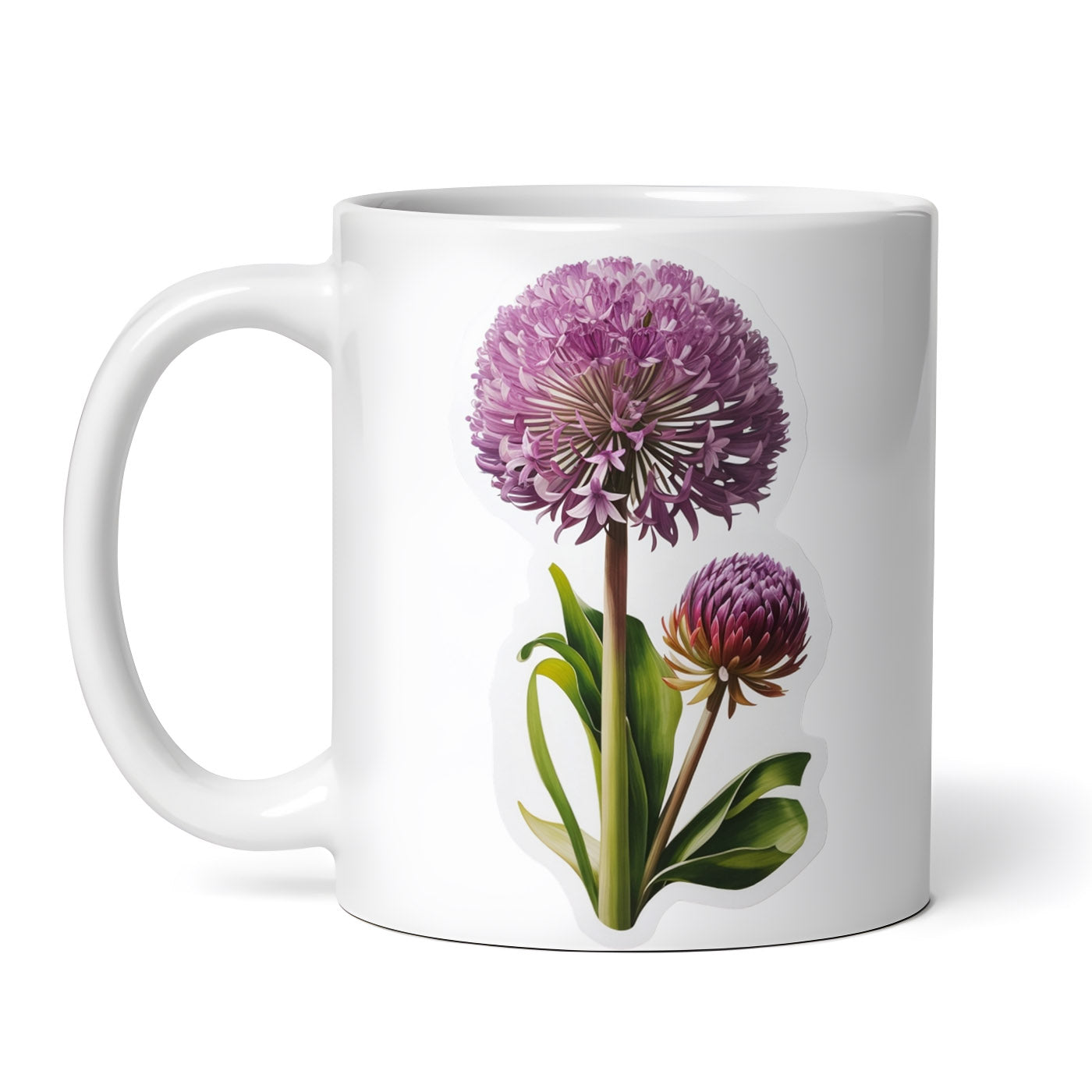 Cana ceramica, Flori de Allium, NO7607, 330 ml, Multicolor