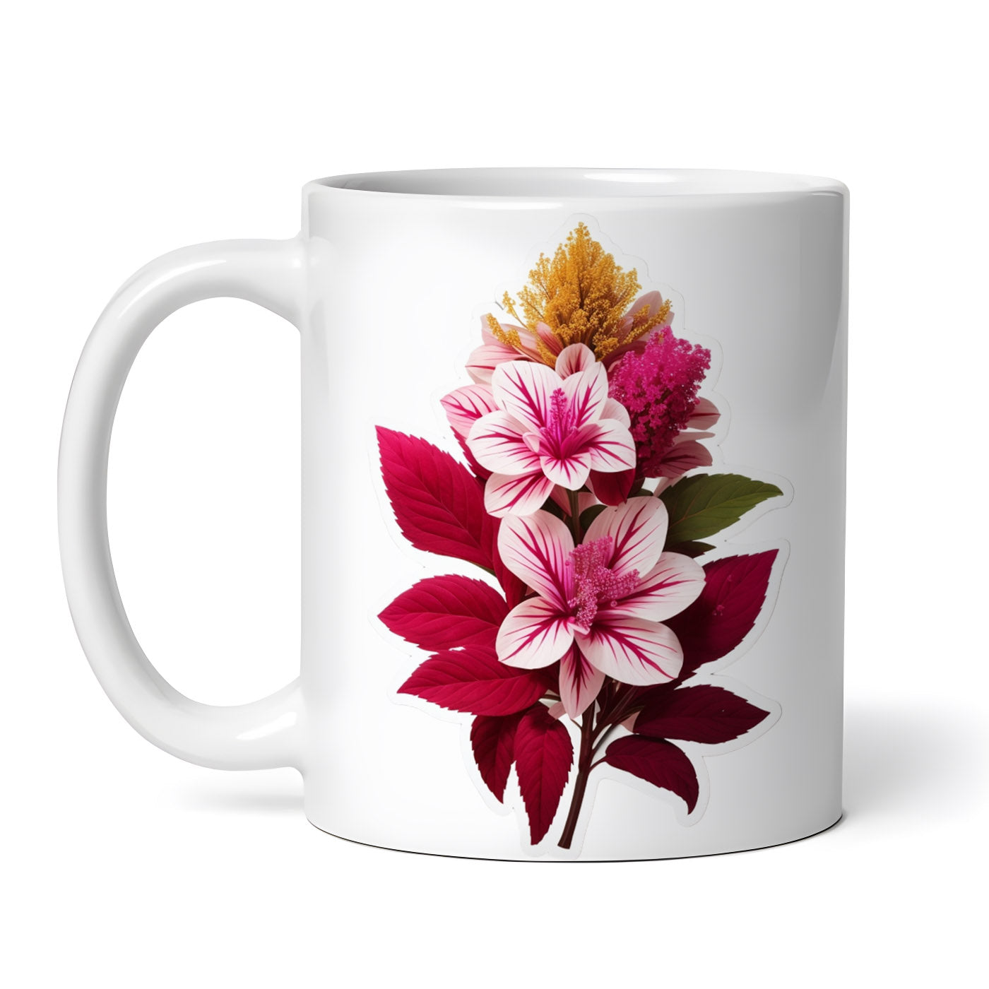Cana ceramica, Flori de Amaranth ascutite, NO7618, 330 ml, Multicolor