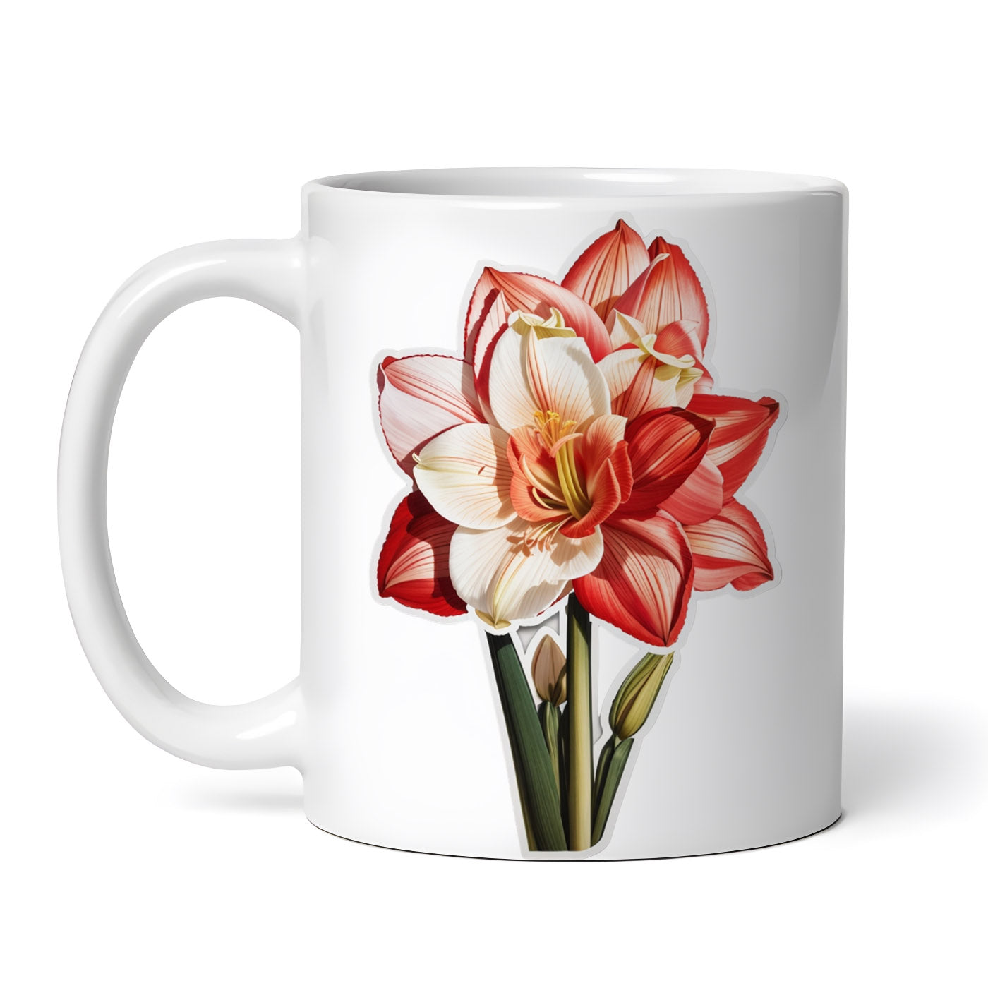Cana ceramica, Flori de Amaryllis, NO7623, 330 ml, Multicolor