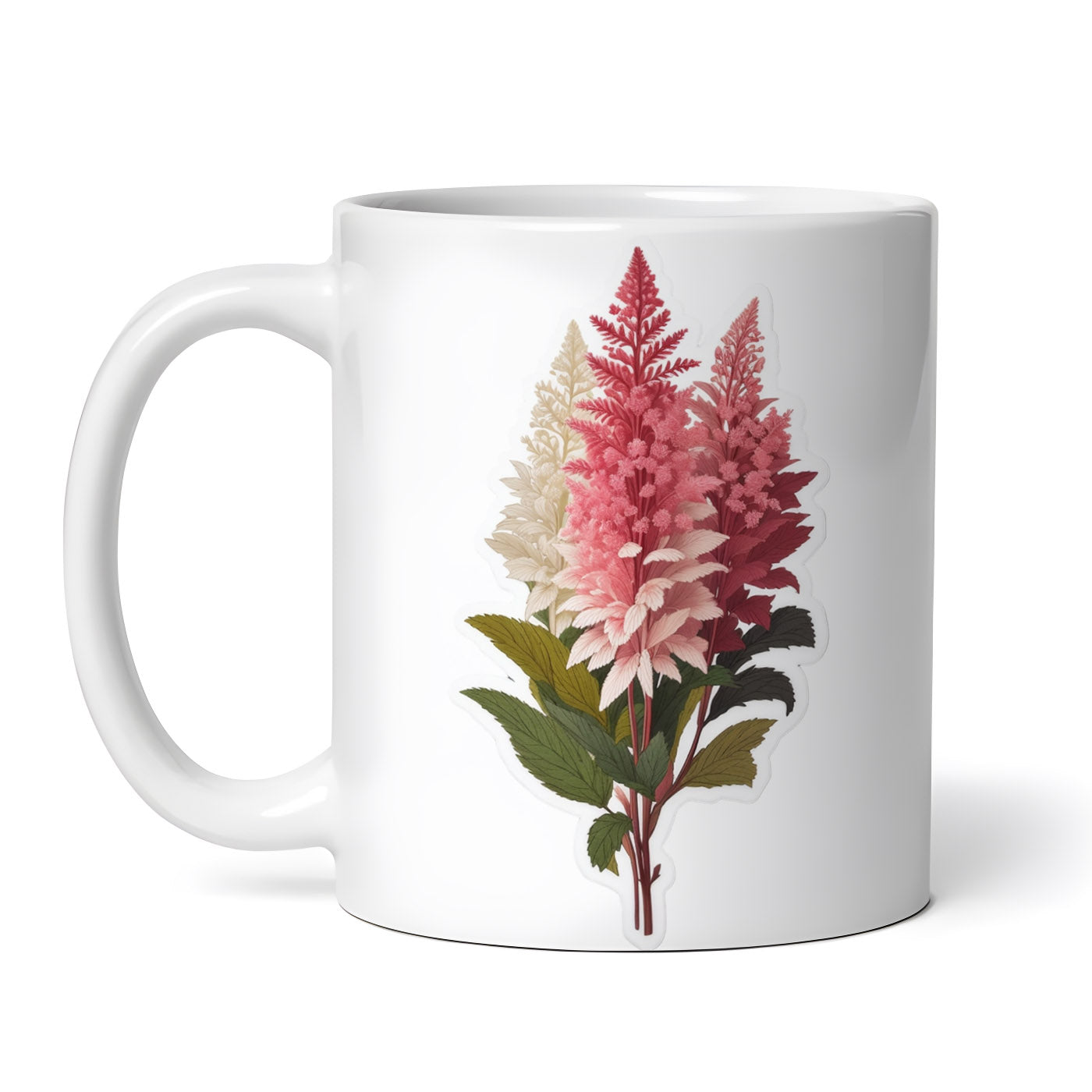 Cana ceramica, Flori de Astilbe buchet, NO7704, 330 ml, Multicolor