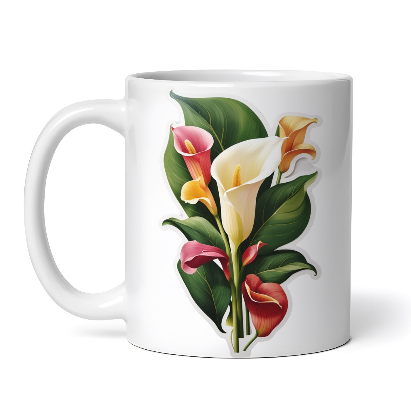 Cana ceramica, Flori de calle cu frunze, NO7918, 330 ml, Multicolor
