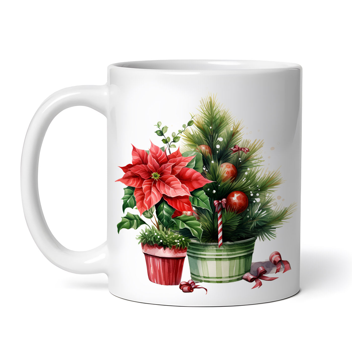 Cana ceramica, Flori de craciun Emma, NO317, 330 ml, Multicolor