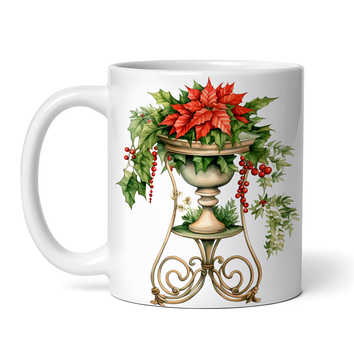 Cana ceramica, Flori de craciun Isabela, NO3191, 330 ml, Multicolor